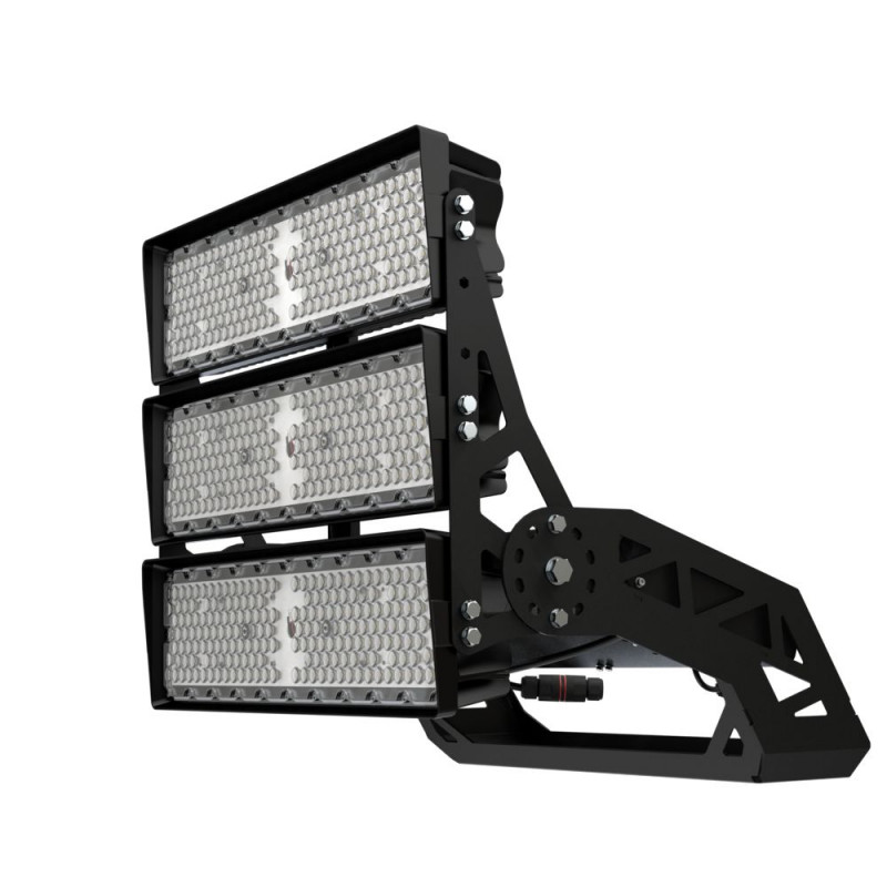 За счет конструкции радиаторной части прожекторы мощностью 400 и 500 Вт на один модуль имеют оптимальное сочетание массы, габаритов и цены за люмен, что особенно важно при выборе светильников для установки на высокомачтовые опоры.