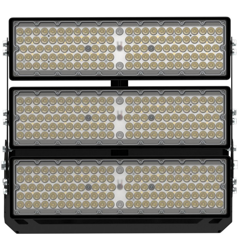За счет конструкции радиаторной части прожекторы мощностью 400 и 500 Вт на один модуль имеют оптимальное сочетание массы, габаритов и цены за люмен, что особенно важно при выборе светильников для установки на высокомачтовые опоры.