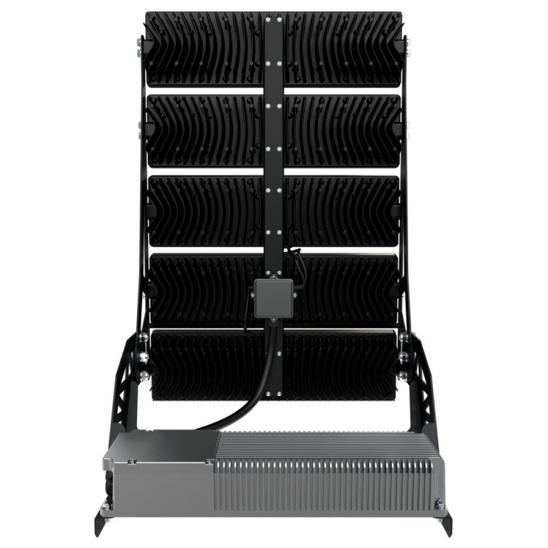 За счет конструкции радиаторной части прожекторы мощностью 400 и 500 Вт на один модуль имеют оптимальное сочетание массы, габаритов и цены за люмен, что особенно важно при выборе светильников для установки на высокомачтовые опоры.