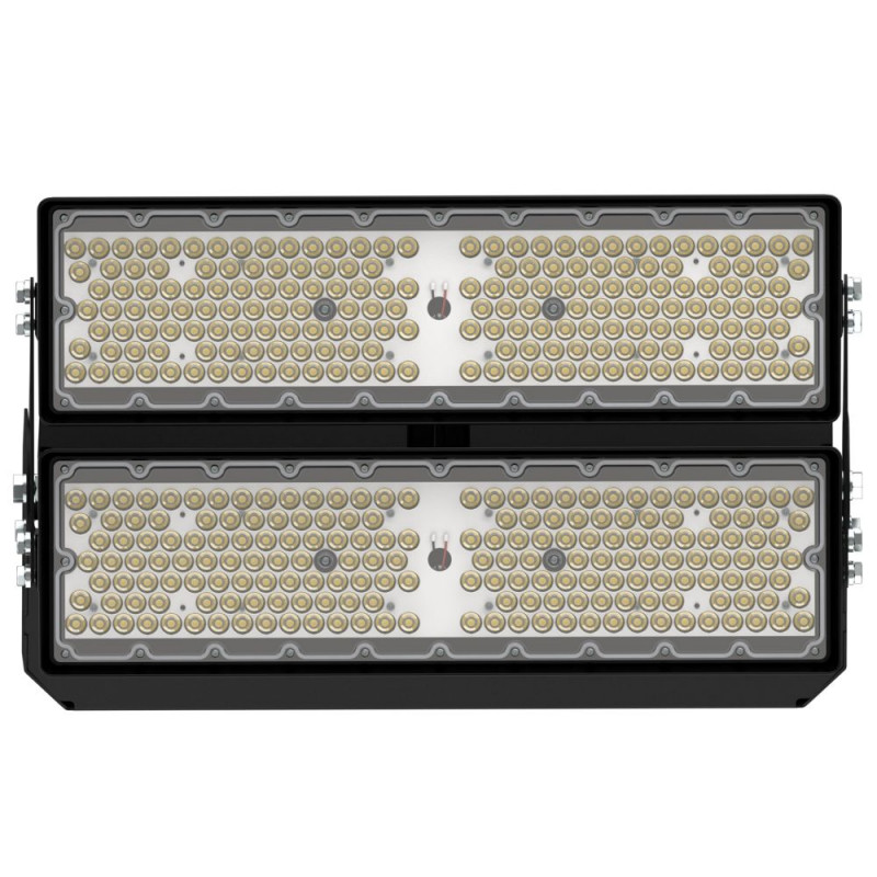 За счет конструкции радиаторной части прожекторы мощностью 400 и 500 Вт на один модуль имеют оптимальное сочетание массы, габаритов и цены за люмен, что особенно важно при выборе светильников для установки на высокомачтовые опоры.