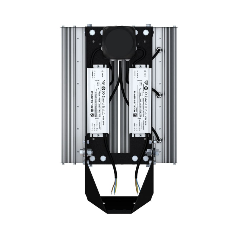 Источники питания размещаются в специальном монтажном шкафу, который крепится на корпус светильника. За счёт наружного исполнения источника снижается нагрев светодиодного модуля, и сам светильник служит дольше.