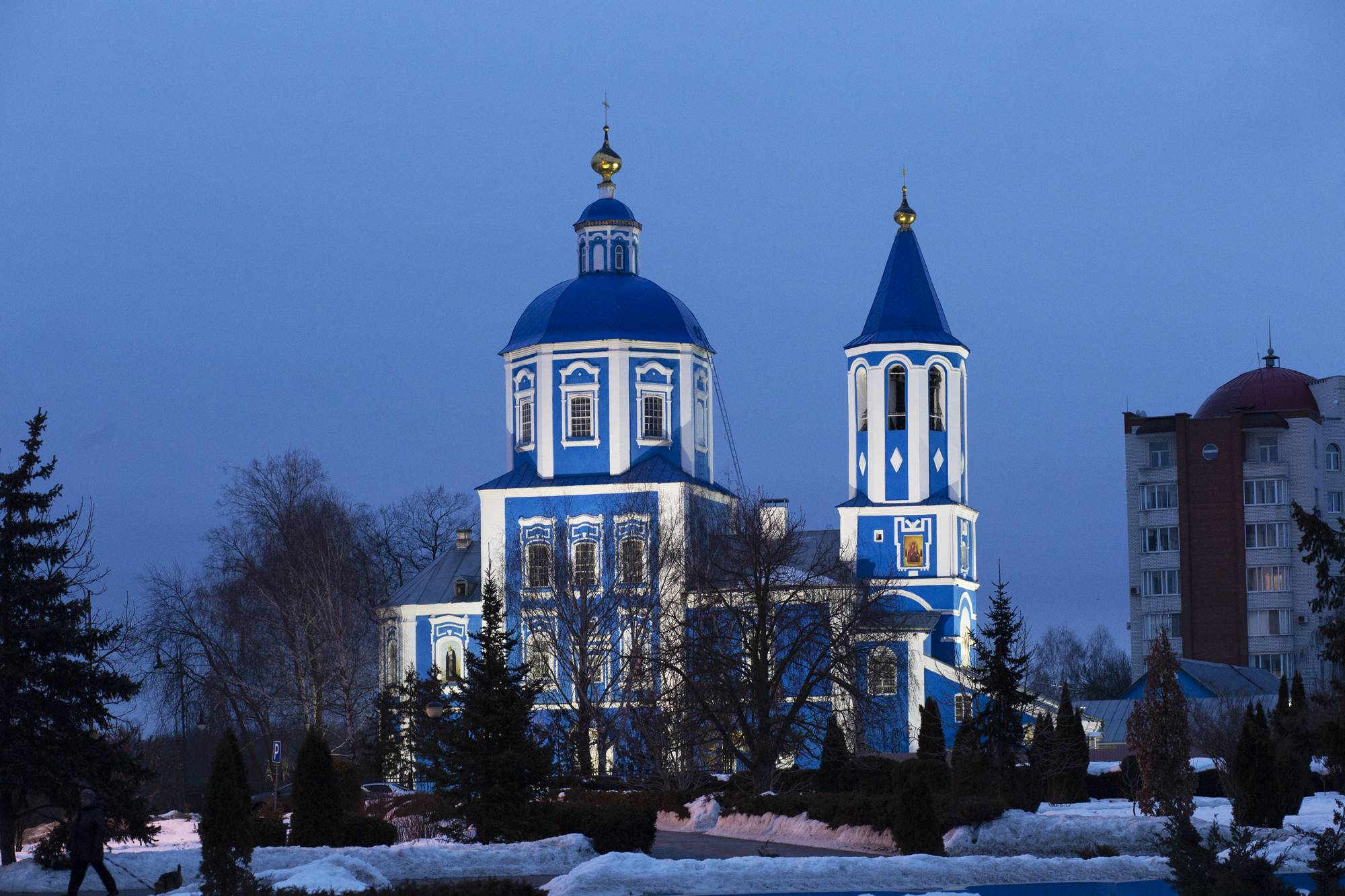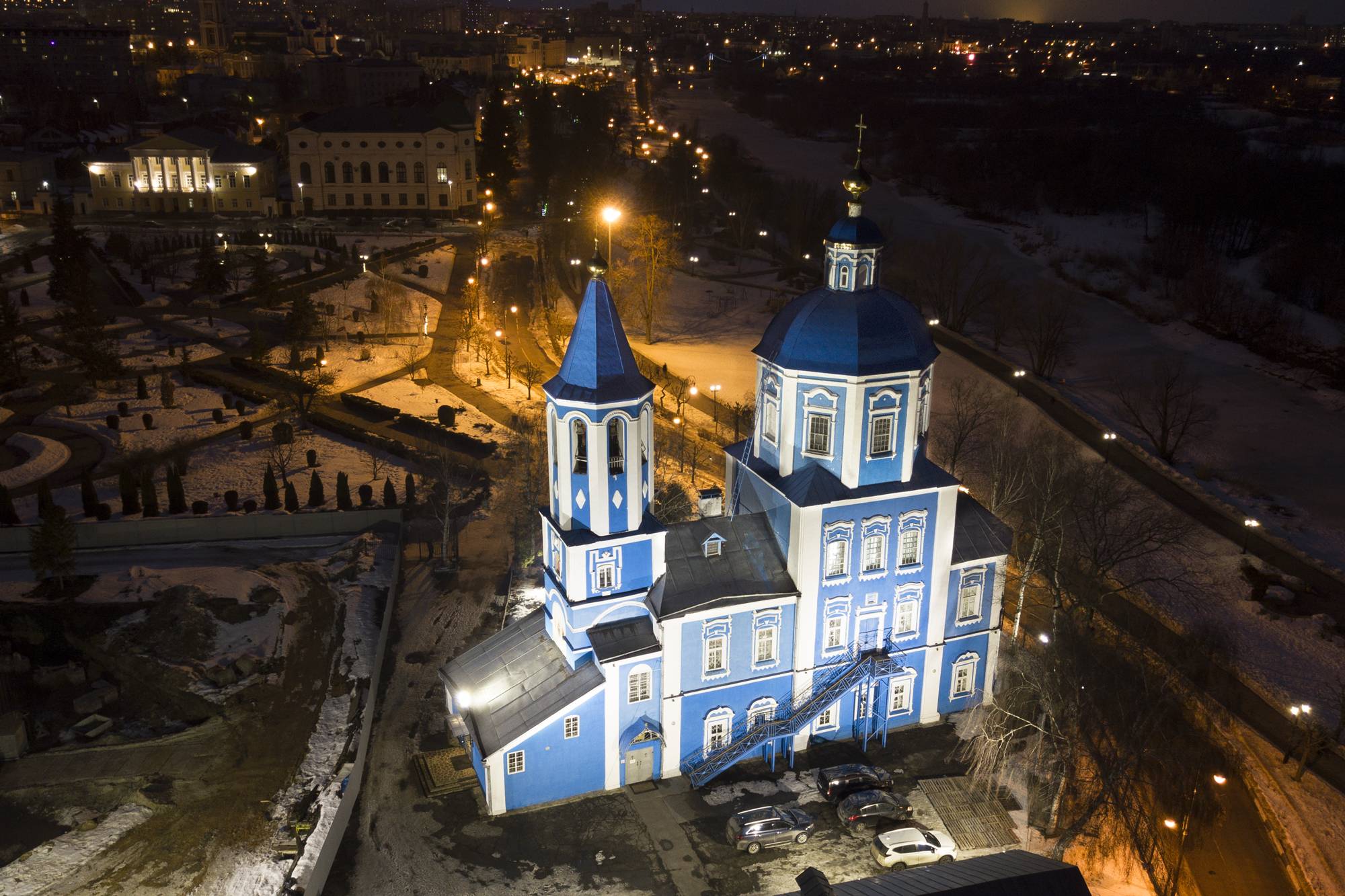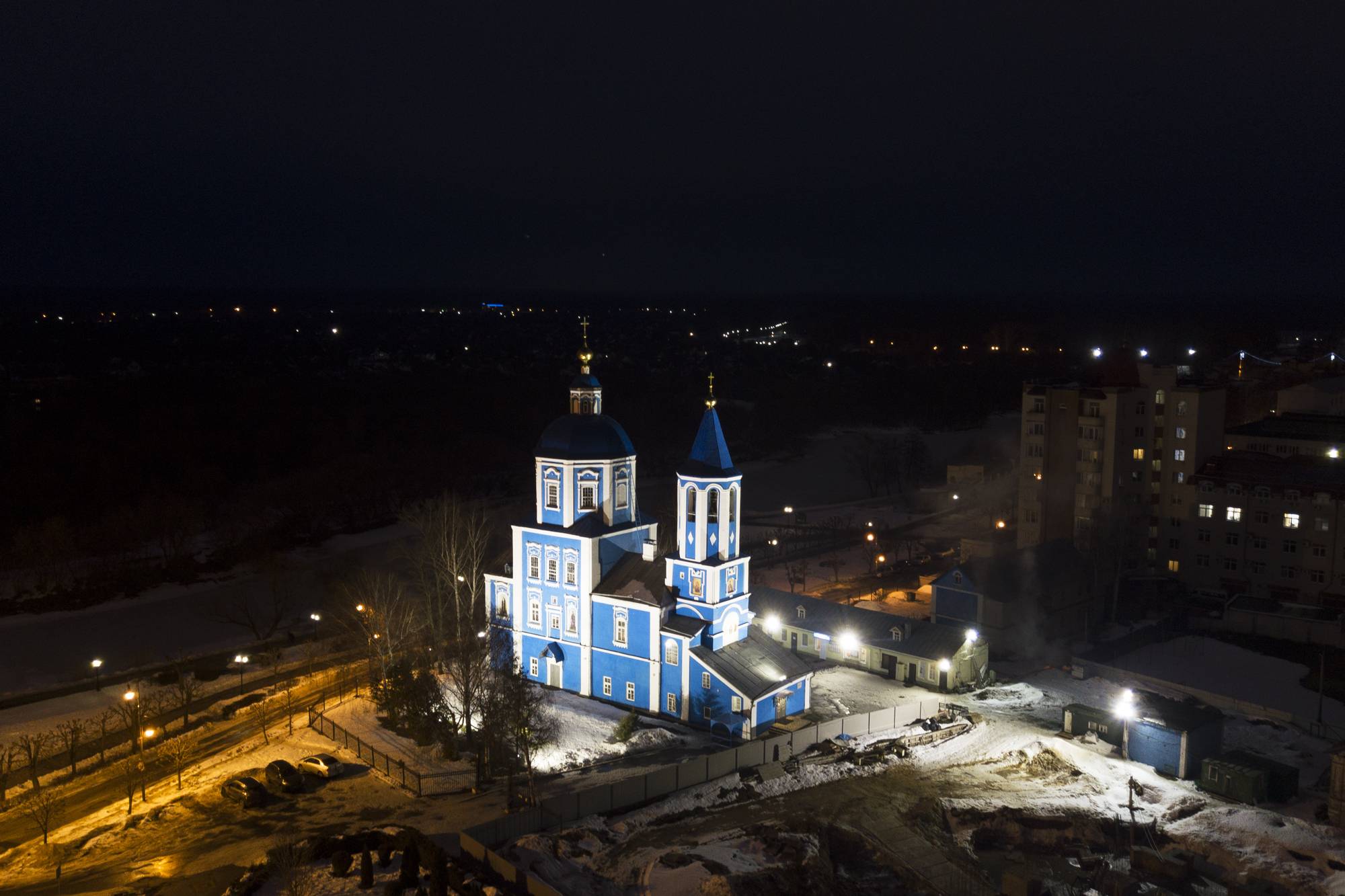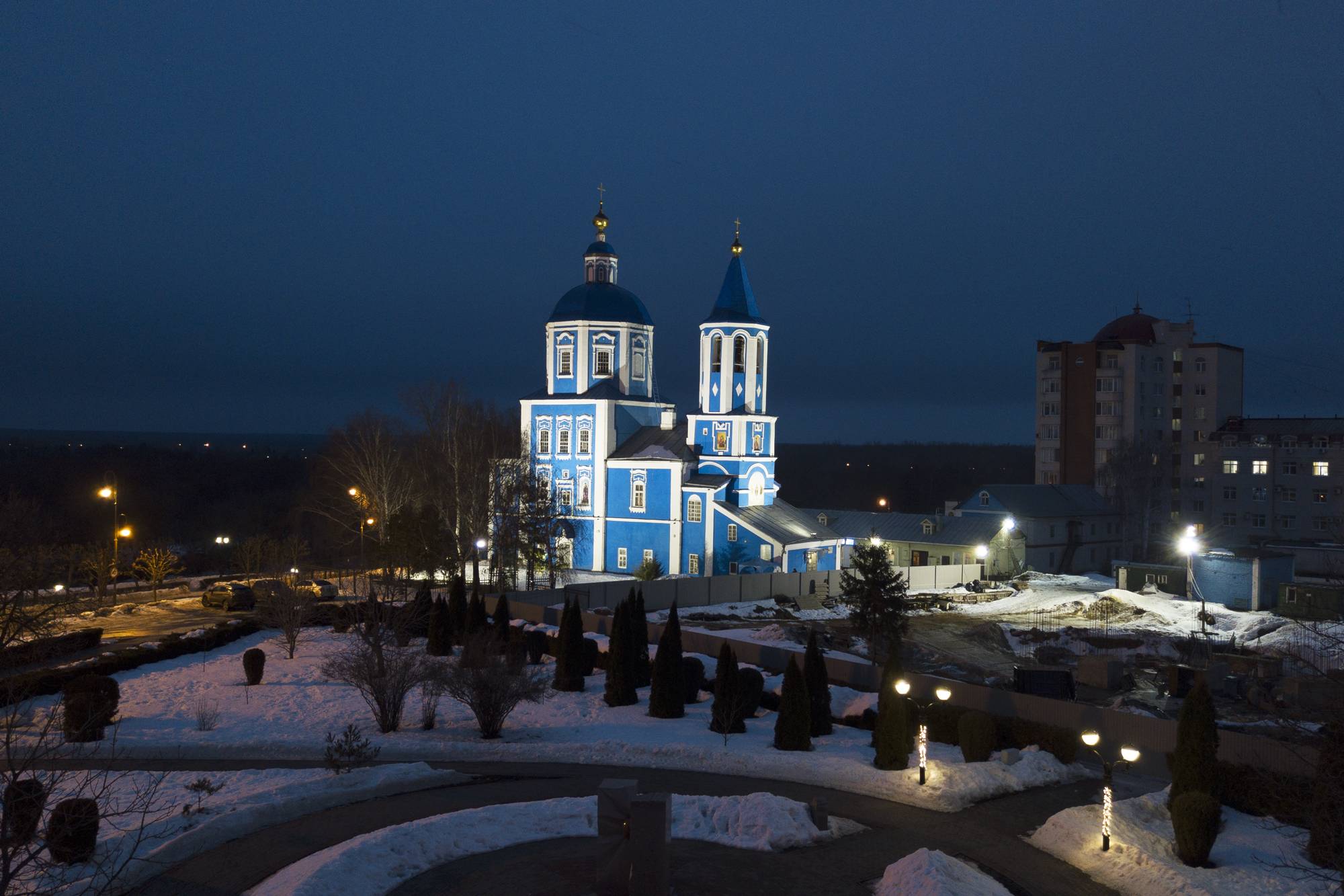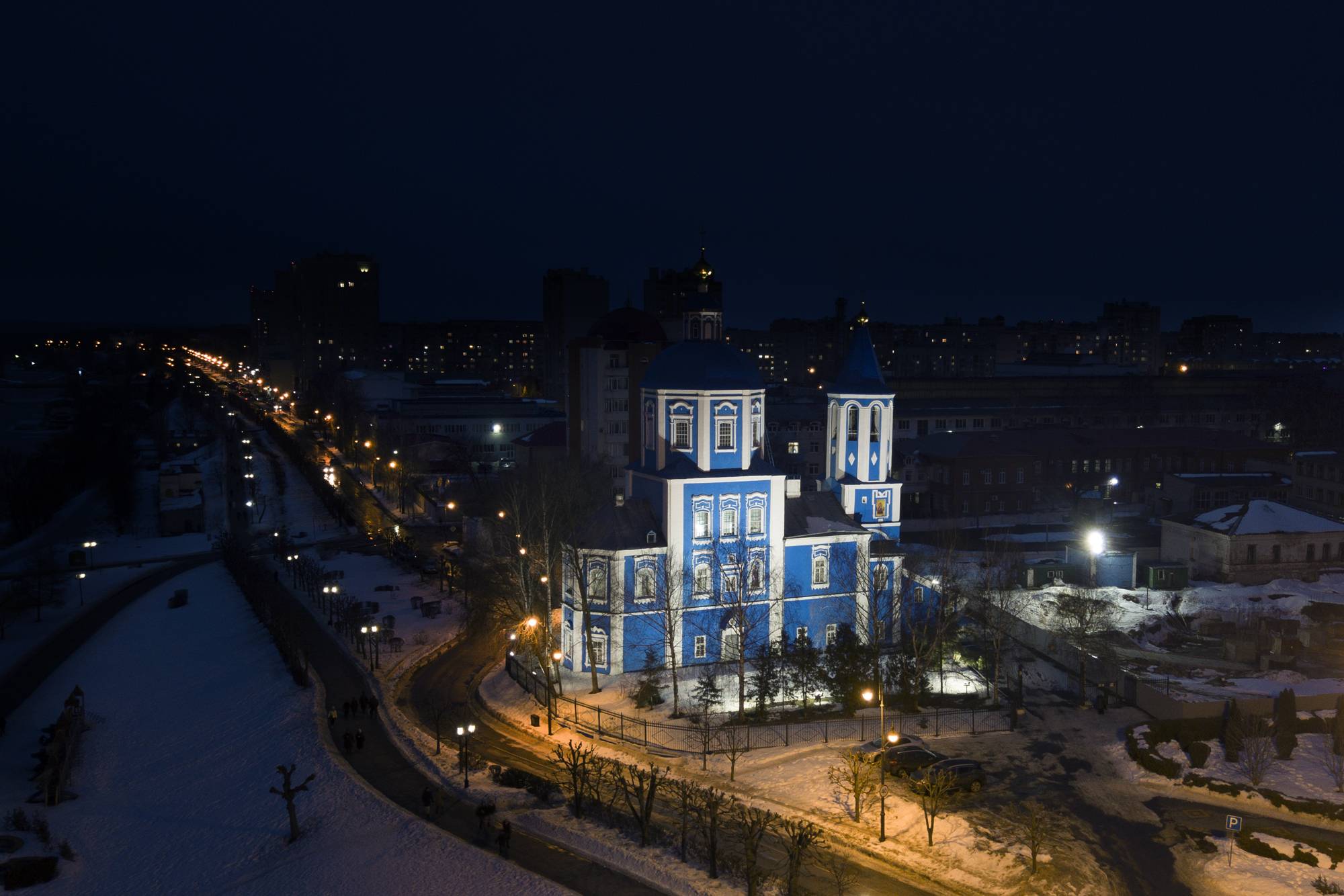 Узконаправленная оптика 12 и 35 градусов позволяет добиться необходимого уровня освещенности на верхних элементах собора, а выбранная КЦТ (5000 К) подчеркивает цветовое оформление здания собора.