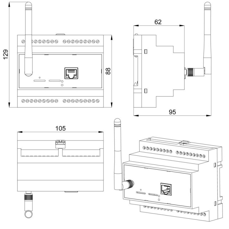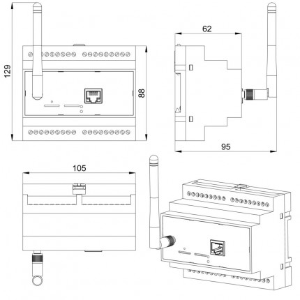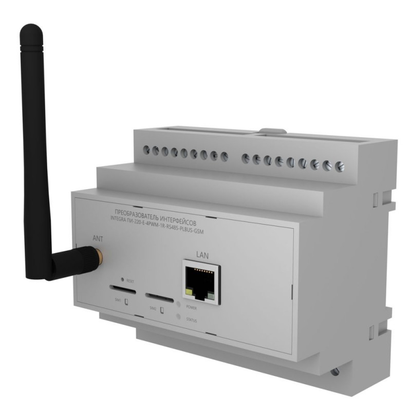 Преобразователь интерфейсов Integra ПИ-220-E-4PWM-1R-RS485-PLBUS-GSM IP20