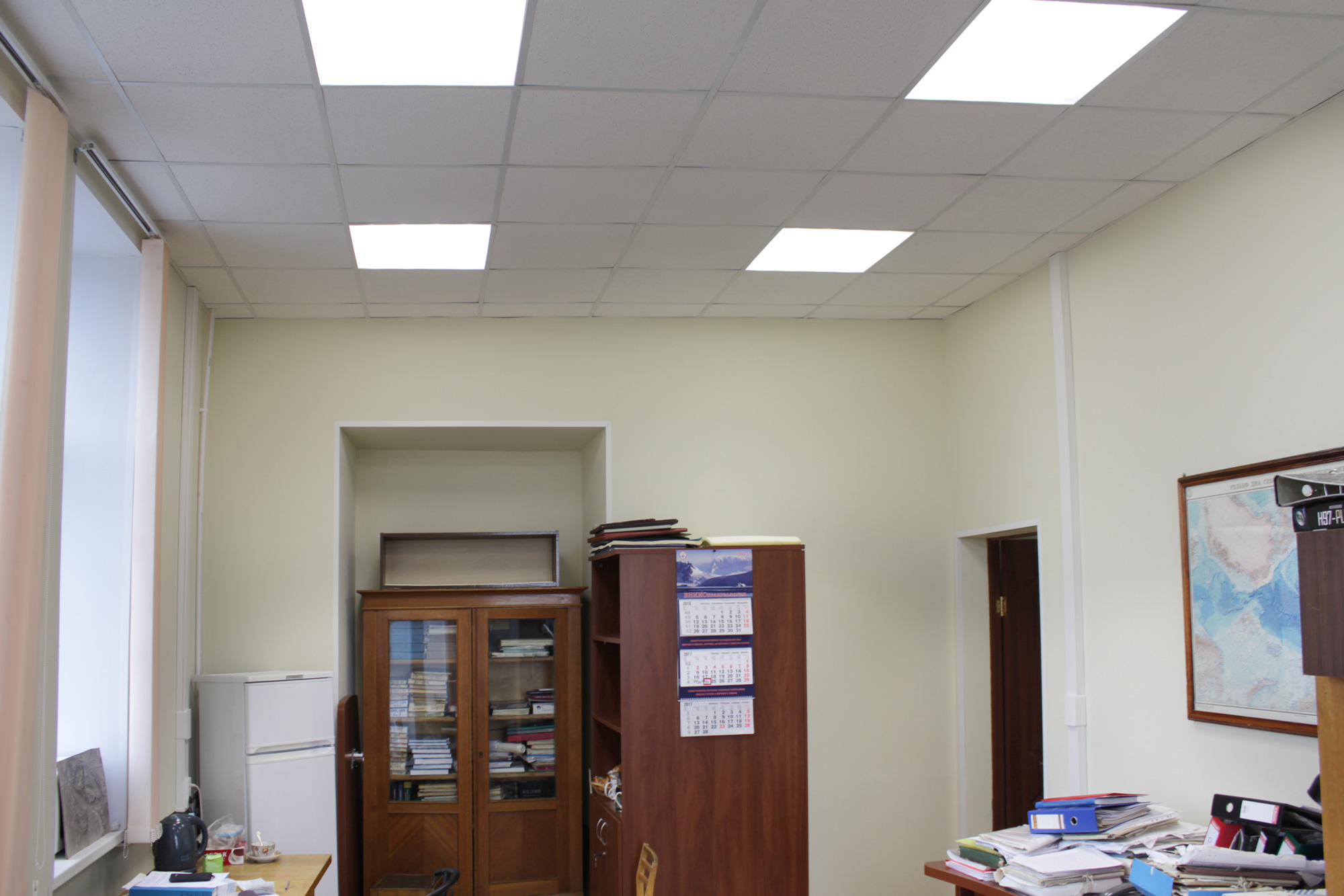 Что касается НИИ Геологии и минеральных ресурсов, светодиодные светильники стали отличной альтернативой старым люминесцентным аналогам, помогая сэкономить на электроэнергии, а также закупке и замене старых ламп.