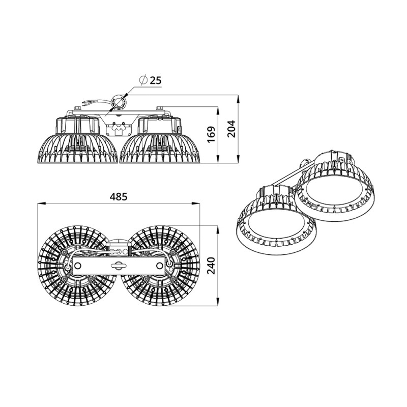 Светильники можно монтировать на рым-болт (базовая комплектация) или кронштейн (опционально).