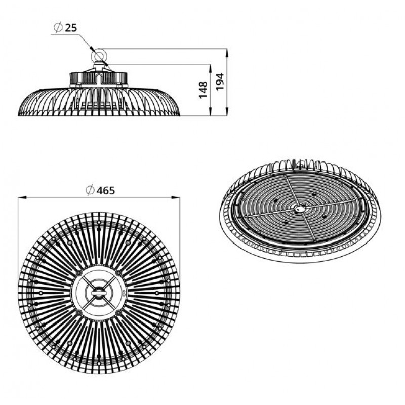 Серия подвесных светодиодных светильников для освещения помещений с высокими потолками и большой высотой подвеса: