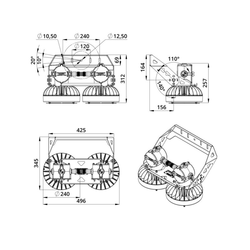 Серия взрывозащищенных светильников для освещения взрывоопасных зон классов 1 и 2 по газу и классов 21 и 22 по пыли, например: