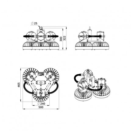 Базовые — на поворотный кронштейн, подвесное, на трубу 3/4 (этот вариант доступен только для одномодульного светильника).