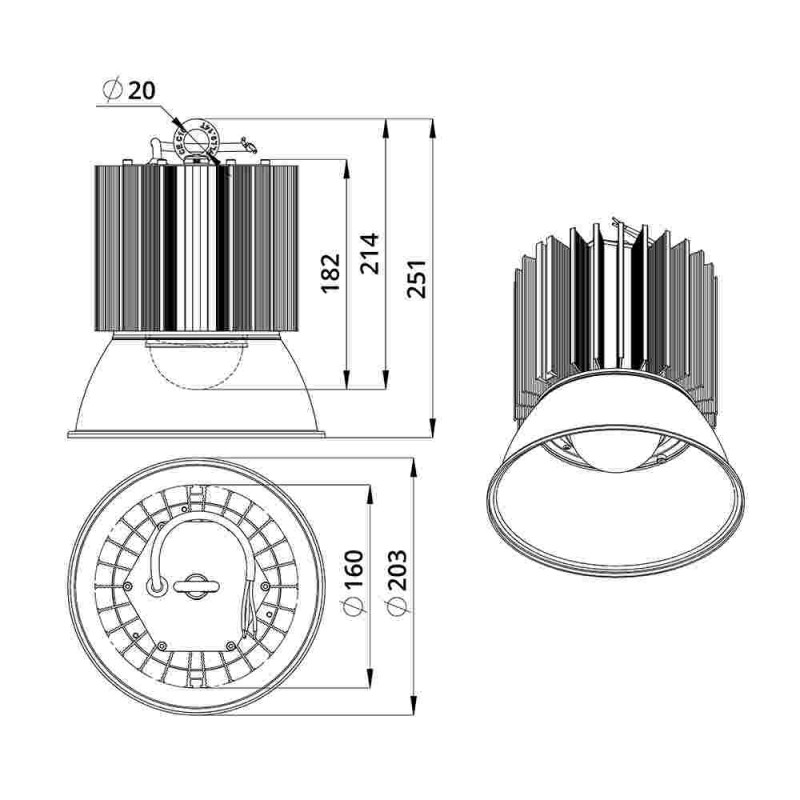 Экструдированный корпус изготовлен из анодированного алюминия с большой площадью поверхности (за счёт ребер и изгибов), что способствует эффективному теплоотведению от светодиодов.