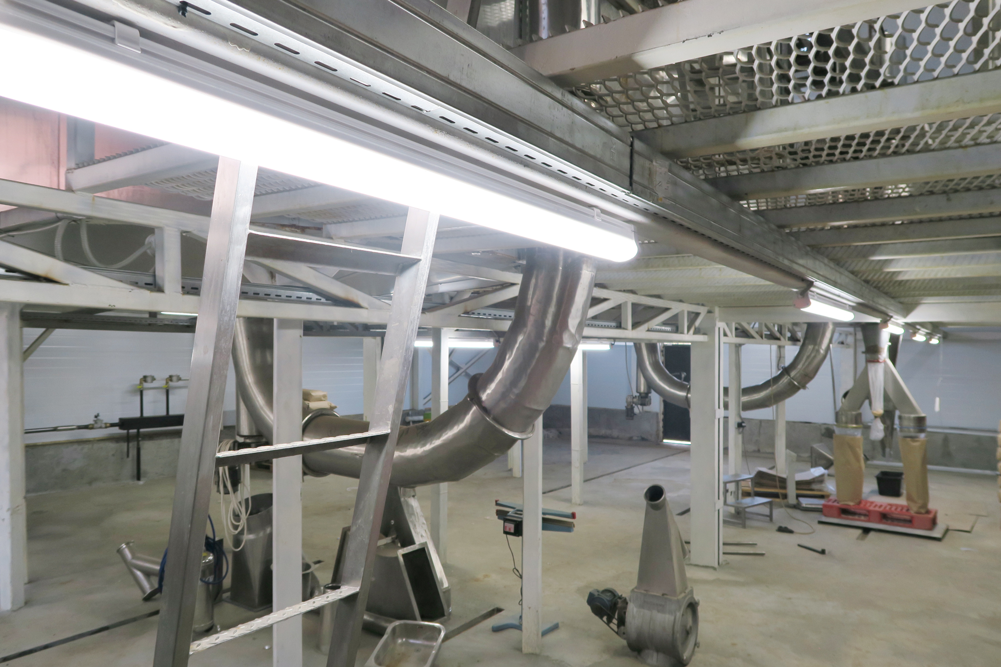Предложенное осветительное решение: установили светодиодные светильники Айсберг v2.0 40 1200мм 5000К Опал в количестве 35 штук. Так как в помещении возможны перепады температур, произведена дополнительная герметизация боковых крышек и установка клапана выравнивания давления.