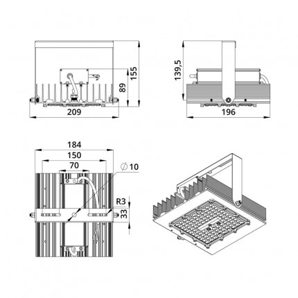 В комплекте идёт кронштейн, который позволяет регулировать угол наклона прожектора. Специальные зубцы на кронштейнах (для светильников 200-300 Вт) дополнительно облегчают регулировку положения прожектора.