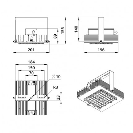 В комплекте идёт кронштейн, который позволяет регулировать угол наклона прожектора. Специальные зубцы на кронштейнах (для светильников 200-300 Вт) дополнительно облегчают регулировку положения прожектора.