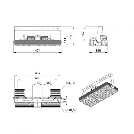 В комплекте идёт кронштейн, который позволяет регулировать угол наклона прожектора. Специальные зубцы на кронштейнах (для светильников 200-300 Вт) дополнительно облегчают регулировку положения прожектора.