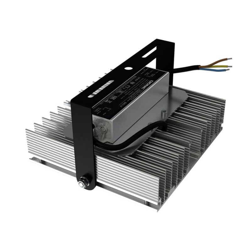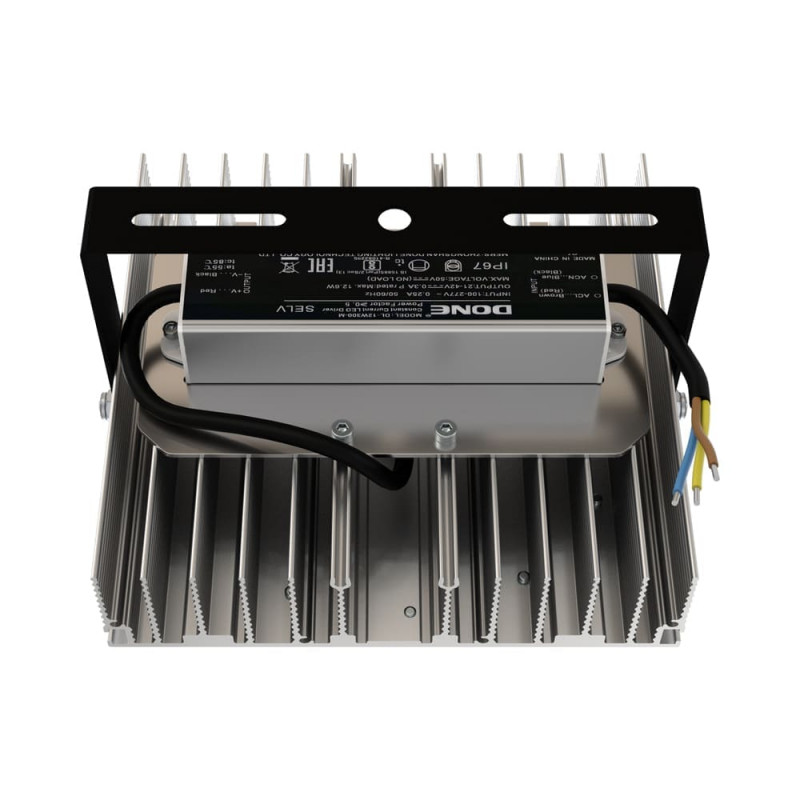 Источник питания наружного исполнения, его металлический корпус залит теплопроводящим компаундом. За счёт этого снижается нагрев светодиодного модуля и самого источника питания, поэтому светильник служит дольше. Также источник питания защищён от микросекундных импульсов высокой энергии. Это позволяет сохранять работоспособность светильника даже при появлении в сети посторонних помех.