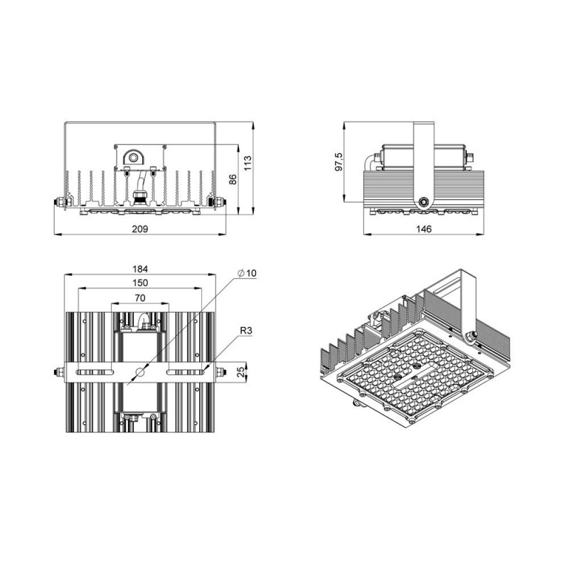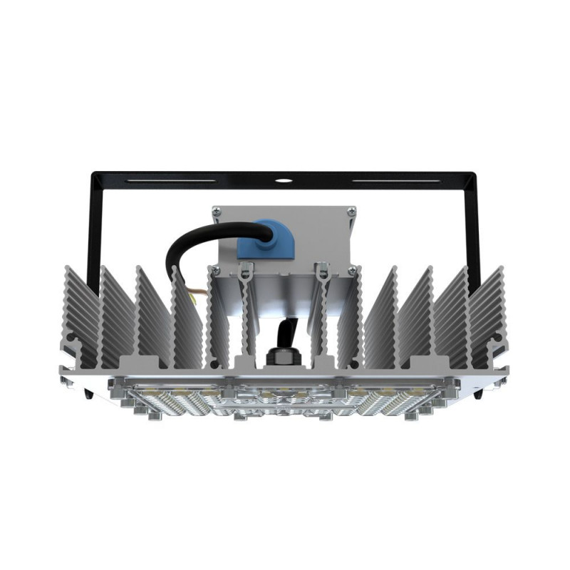 В комплекте идёт кронштейн, который позволяет регулировать угол наклона прожектора. Специальные зубцы на кронштейнах (для светильников 200-300 Вт) дополнительно облегчают регулировку положения прожектора.