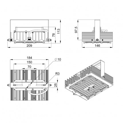 В комплекте идёт кронштейн, который позволяет регулировать угол наклона прожектора. Специальные зубцы на кронштейнах (для светильников 200-300 Вт) дополнительно облегчают регулировку положения прожектора.