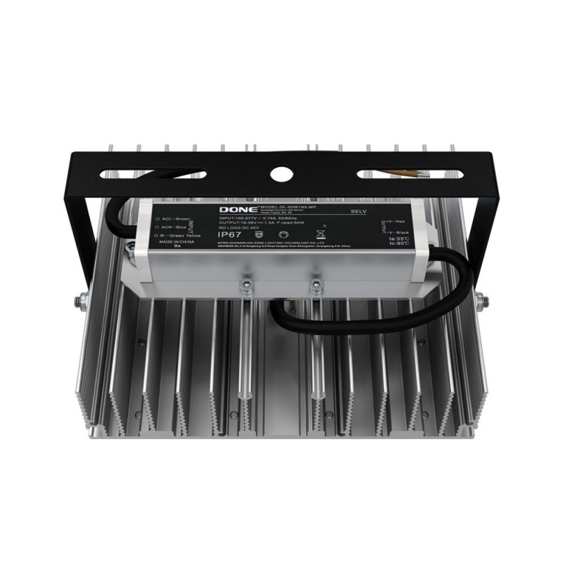 Источник питания наружного исполнения, его металлический корпус залит теплопроводящим компаундом. Это снижает температуру на элементах источника питания, увеличивая срок его службы. Кроме того, за счёт наружного исполнения источника снижается нагрев светодиодного модуля, и сам светильник служит дольше.