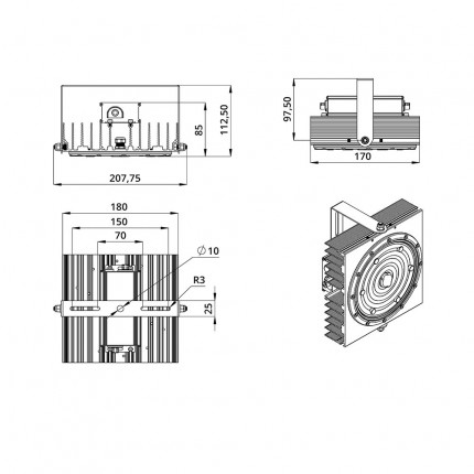 В комплекте идёт кронштейн, который позволяет регулировать угол наклона светильников. Специальные зубцы на кронштейнах (для светильников 200-300 Вт) дополнительно облегчают регулировку положения прожектора.