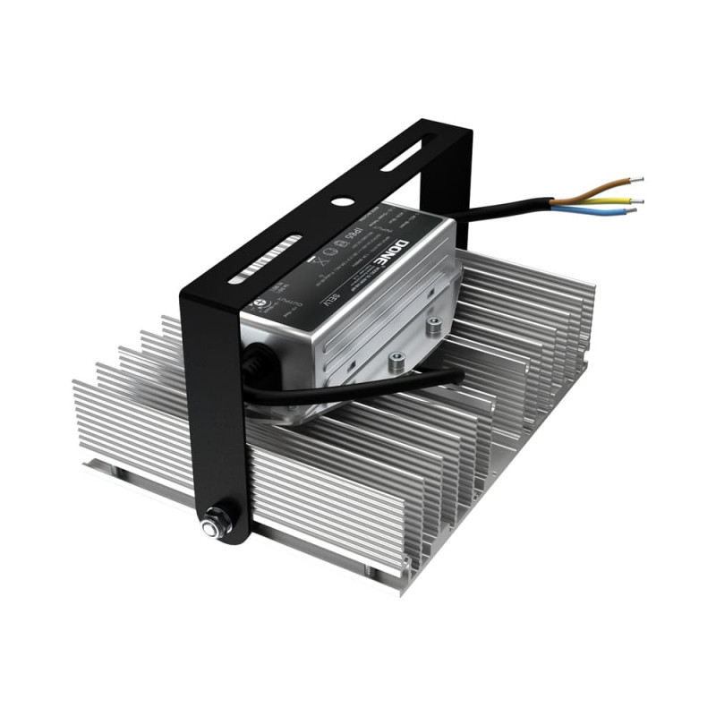 Источник питания наружного исполнения, его металлический корпус залит теплопроводящим компаундом. Это снижает температуру на элементах источника питания, увеличивая срок его службы. Кроме того, за счёт наружного исполнения источника снижается нагрев светодиодного модуля, и сам светильник служит дольше.