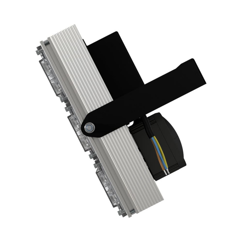 В комплекте идёт кронштейн, который позволяет регулировать угол наклона прожектора. Специальные зубцы на кронштейнах (для светильников 200-300 Вт) дополнительно облегчают регулировку положения прожектора.