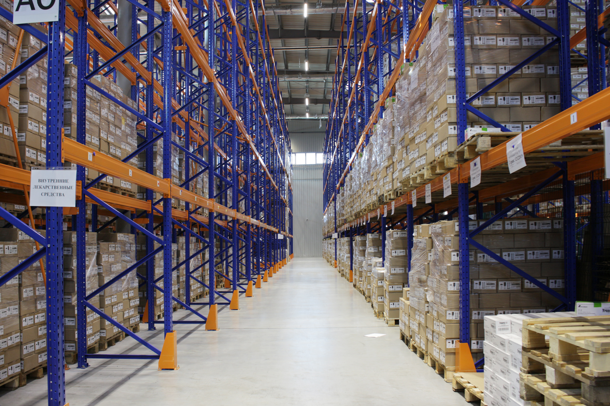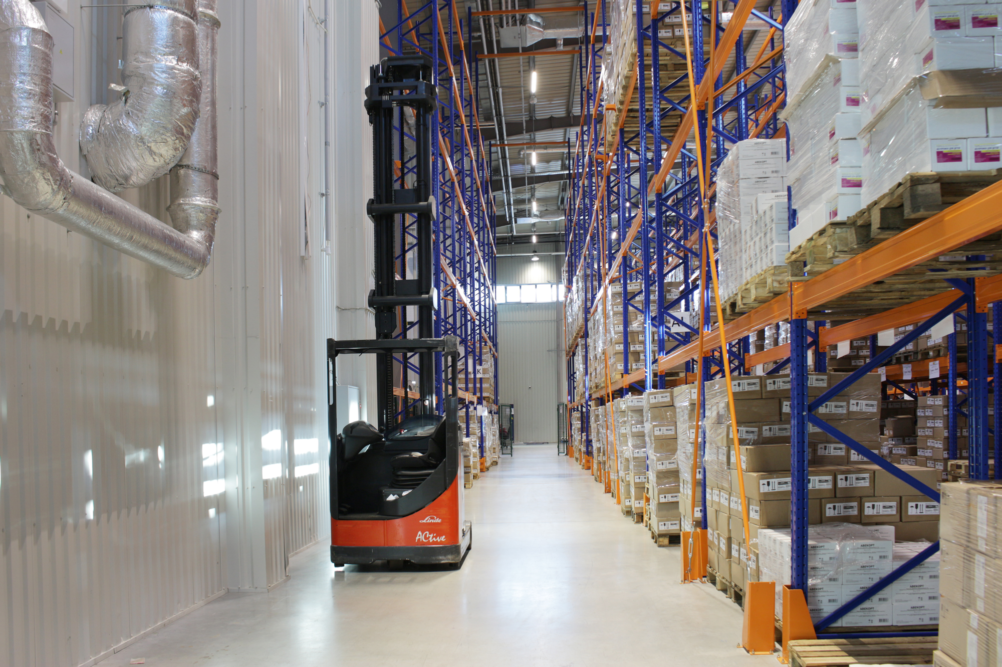 Предложенное осветительное решение: установили светодиодные светильники Т-Линия v2.0 150 1500мм Оптик Склад 4000К 10×70°.