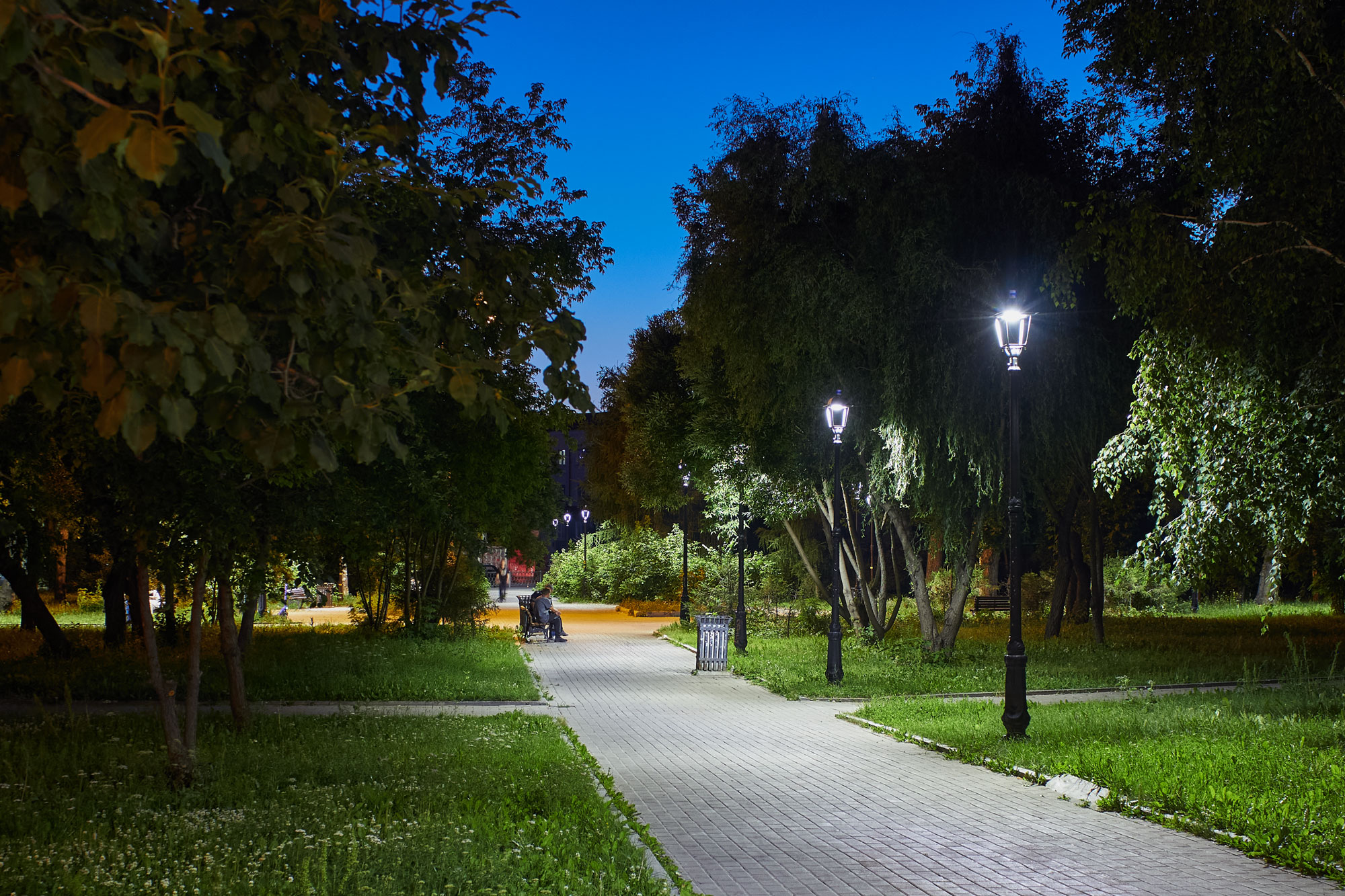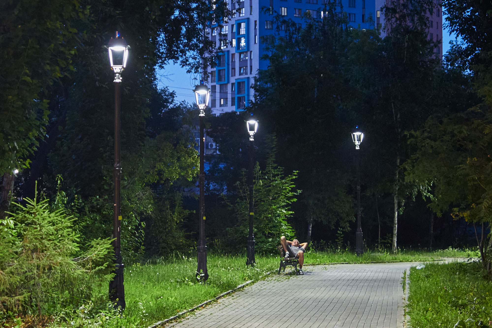 в рамках реализации проекта компанией «БТК Сервис» (официальным партнером PromLED) были выполнены светотехнический расчет, подбор и поставка оборудования. Были выбраны парковые торшерные светильники серии «Пушкинский Премиум» с использованием NEMA-разъемов для интеграции в систему управления освещением.
