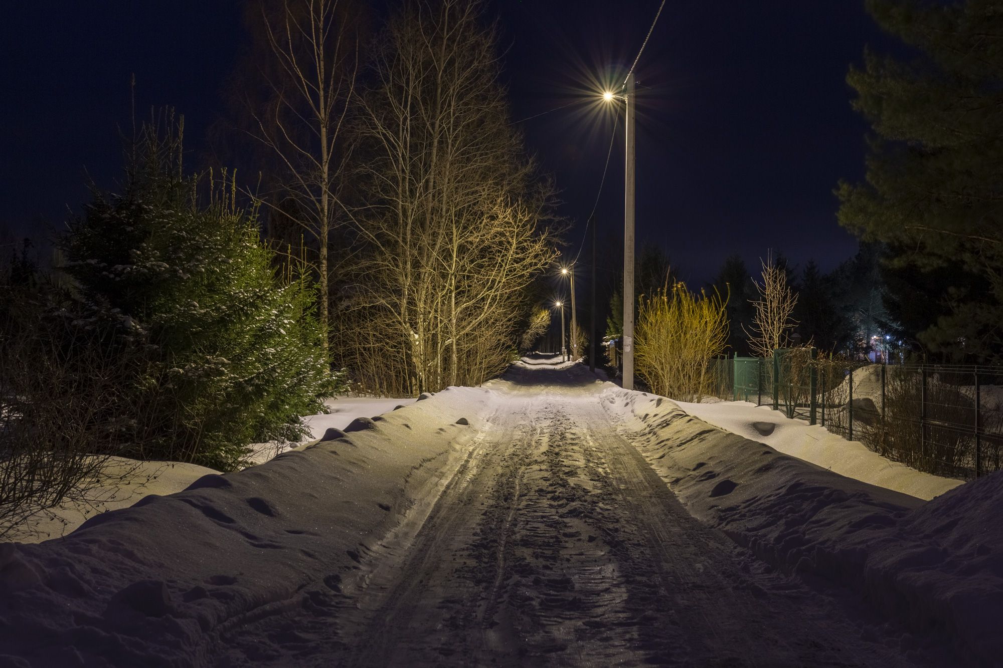Итог: средний уровень освещённости достиг 15 лк. Потребляемая светильниками мощность снизилась в 5 раз. За счёт широкой боковой оптики 155×70° минимизировано появление тёмных зон между опорами освещения.