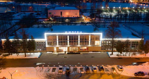 В сентябре 2022 года к нашему официальному дилеру — ООО «Балтийская инжиниринговая компания» — обратилось руководство спортивно-оздоровительного комплекса «Ижорец» (г. Колпино). Задача состояла в комплексной модернизации освещения объектов СОК и выполнении непростой световой инсталляции на крыше одного из зданий.