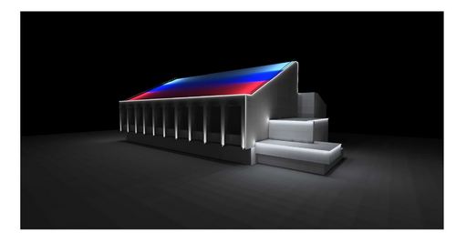 Было необходимо выполнить контурную подсветку фасада здания и создать на крыше комплекса световую инсталляцию — статичную подсветку в цветах российского флага. От инженеров-светотехников PromLED требовалось разработать дизайн-проект и провести необходимые светотехнические расчеты.