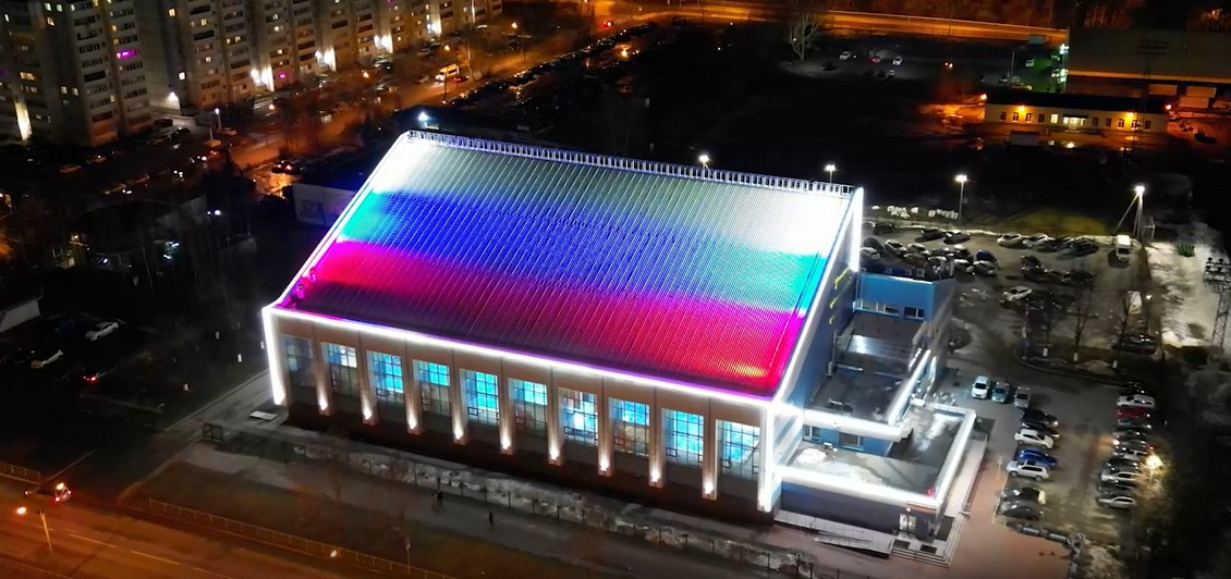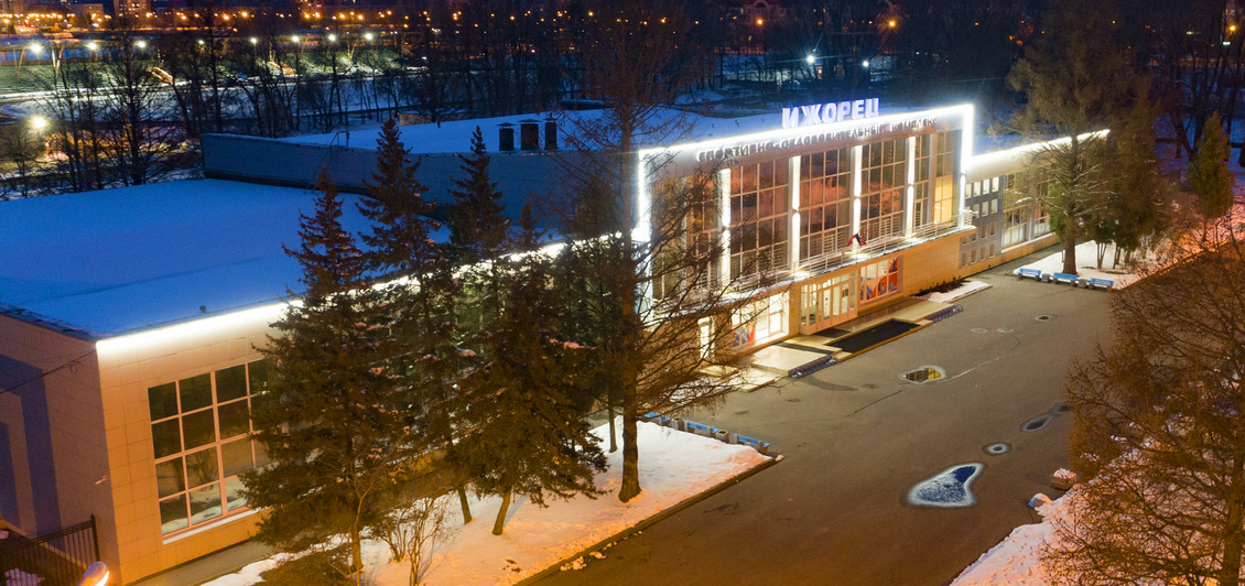 В сентябре 2022 года к нашему официальному дилеру — ООО «Балтийская инжиниринговая компания» — обратилось руководство спортивно-оздоровительного комплекса «Ижорец» (г. Колпино). Задача состояла в комплексной модернизации освещения объектов СОК и выполнении непростой световой инсталляции на крыше одного из зданий.