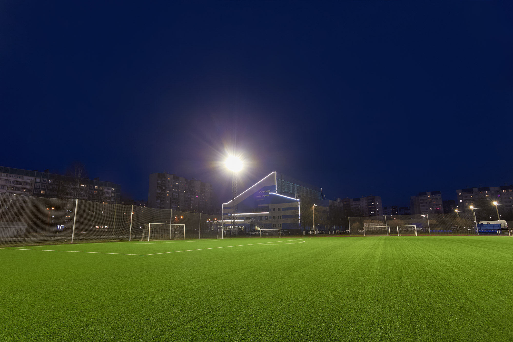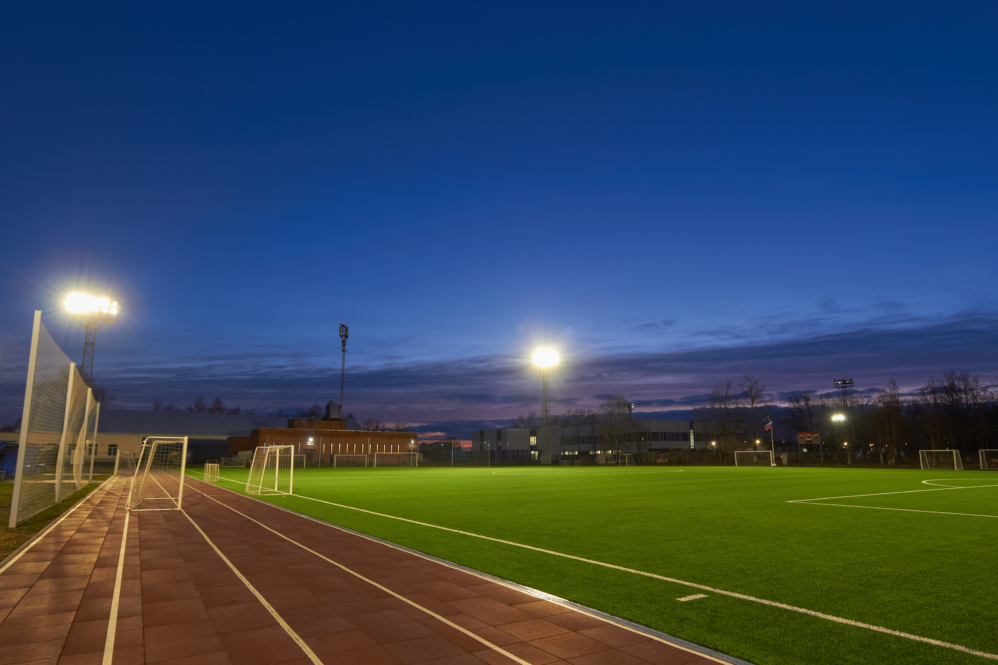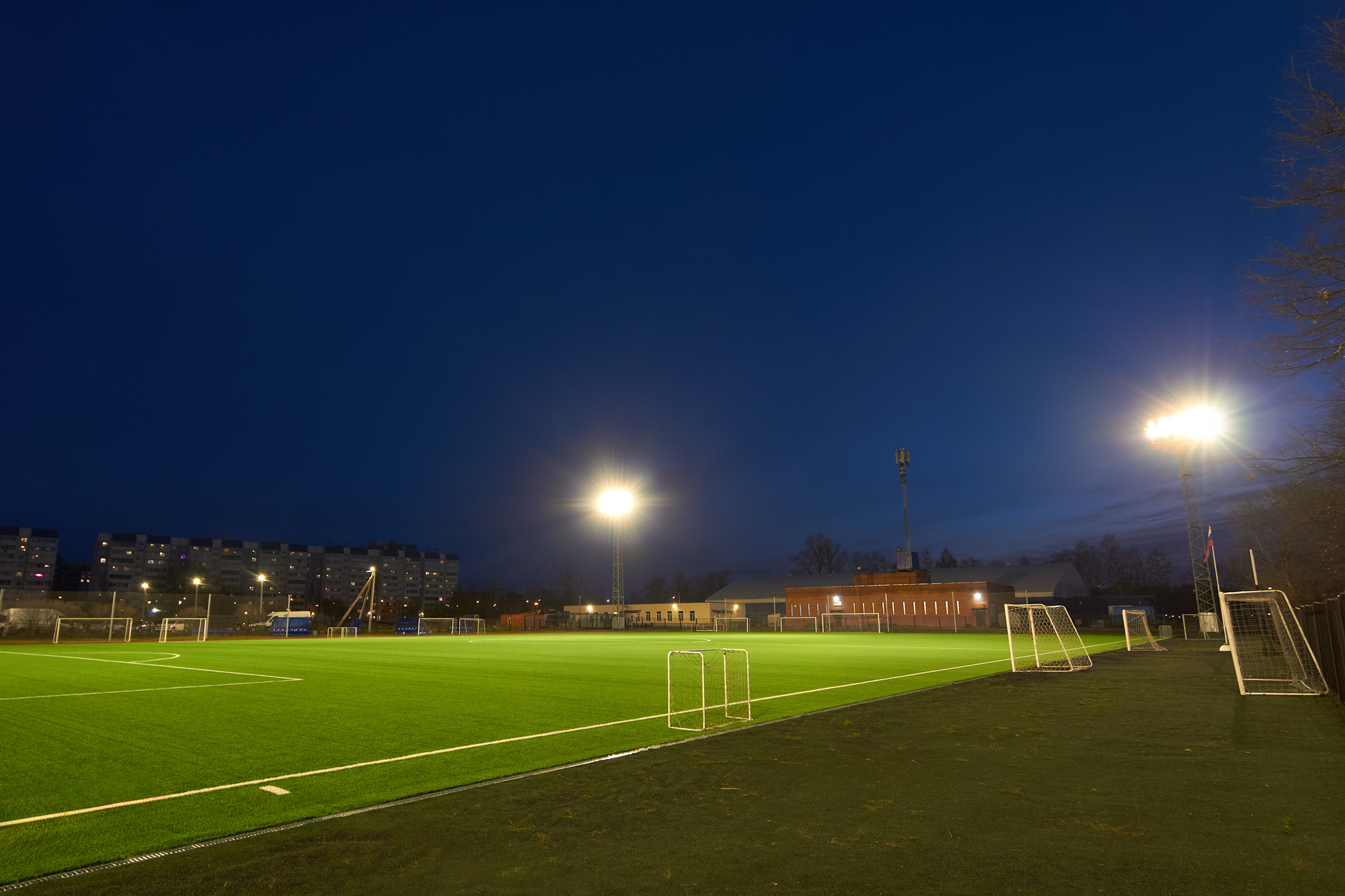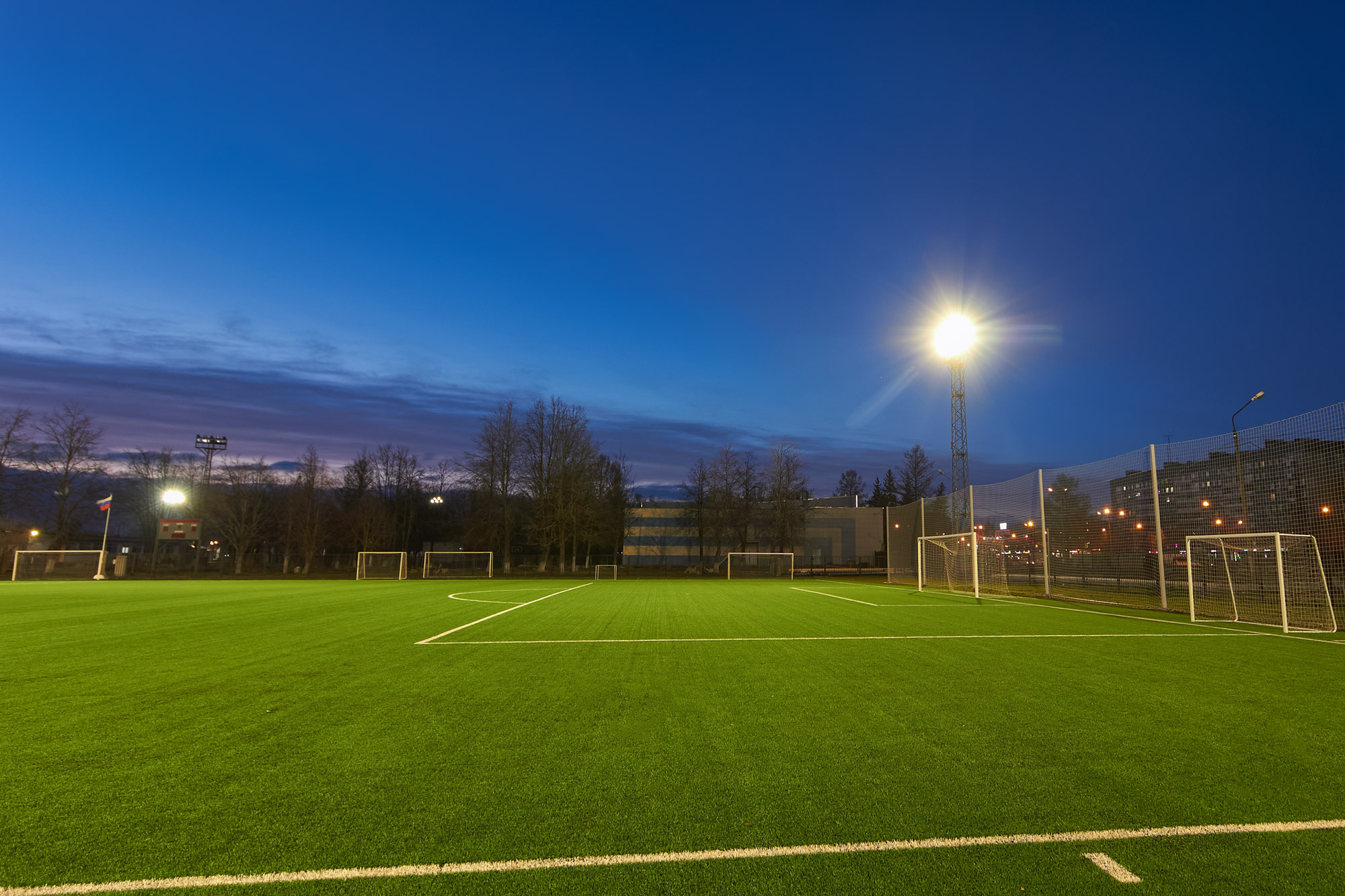 на основании светотехнического расчета для освещения футбольного поля были предложены, изготовлены и установлены светодиодные светильники серии «Плазма S» мощностью 500 Вт. Площадку для игры «Городки» осветили маломощными прожекторами серии «Прожектор S».