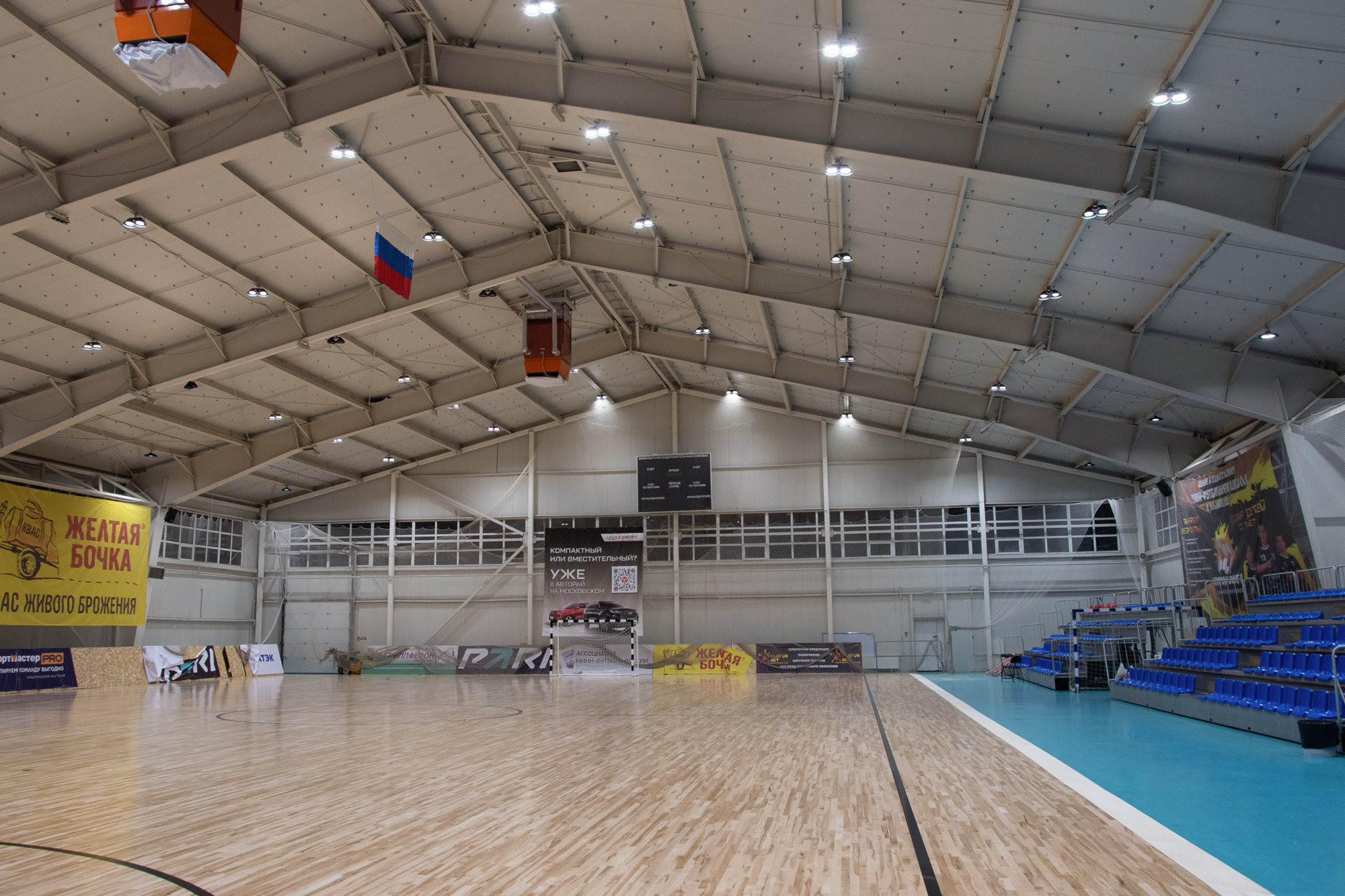 рамках реализации проекта было предложено использовать комбинацию светильников серии «Профи Нео» с различной мощностью и углом рассеивания, чтобы добиться наиболее равномерной засветки помещения спортивного зала.