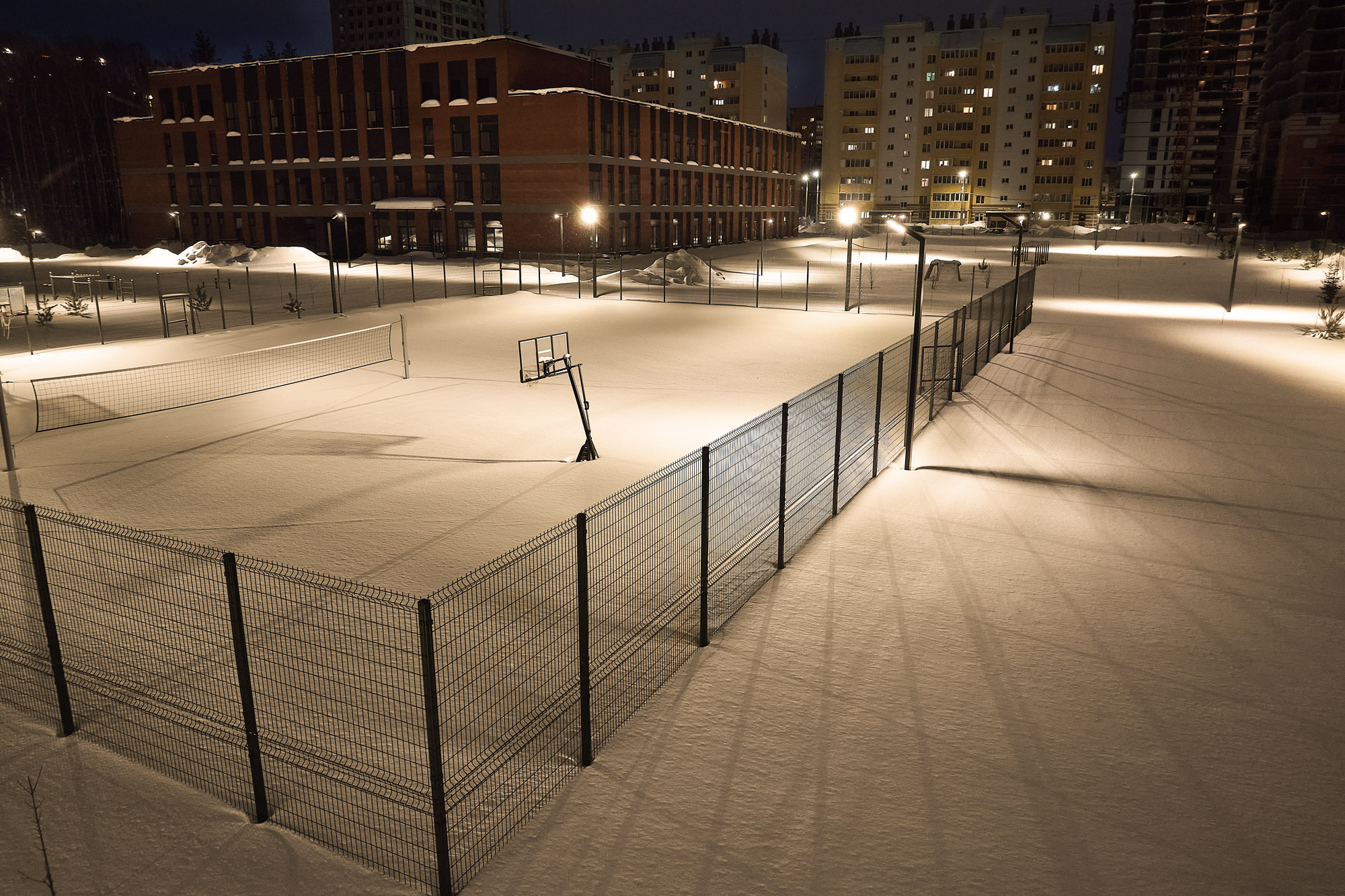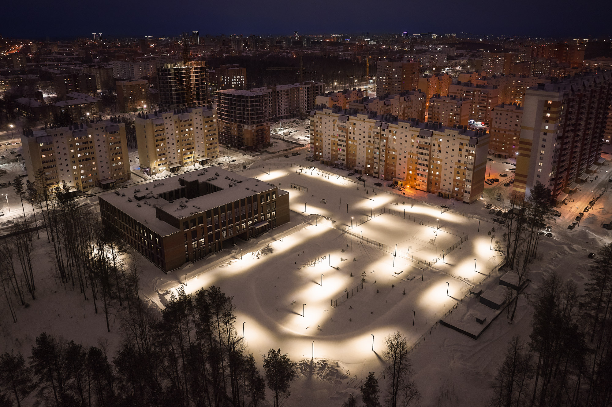 для реализации проекта использовали светильники серии «Парк». Поскольку базовые модификации «Парка» не могли обеспечить необходимый уровень освещенности спортивных площадок, инженеры PromLED разработали модели со специальной оптикой с углом излучения 130х30° (тип КСС кососвет).