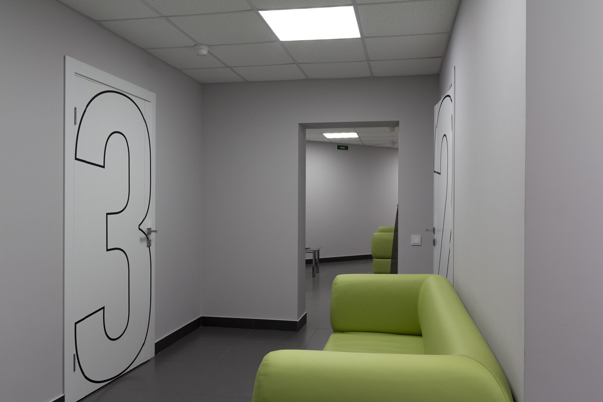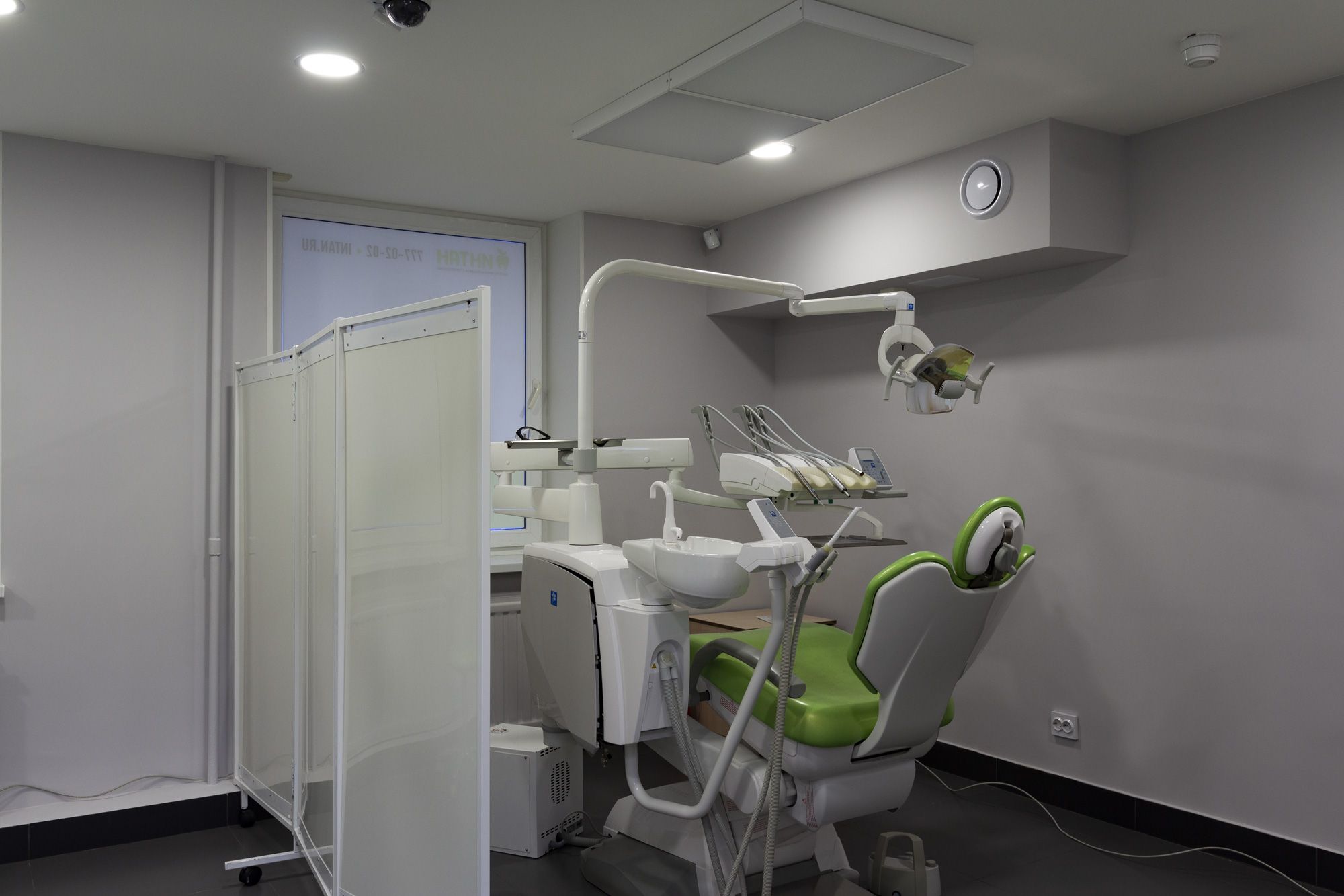 выполнить общее освещение коридоров и холлов, а также индивидуальное освещение над стоматологическими креслами в клинике «Интан».