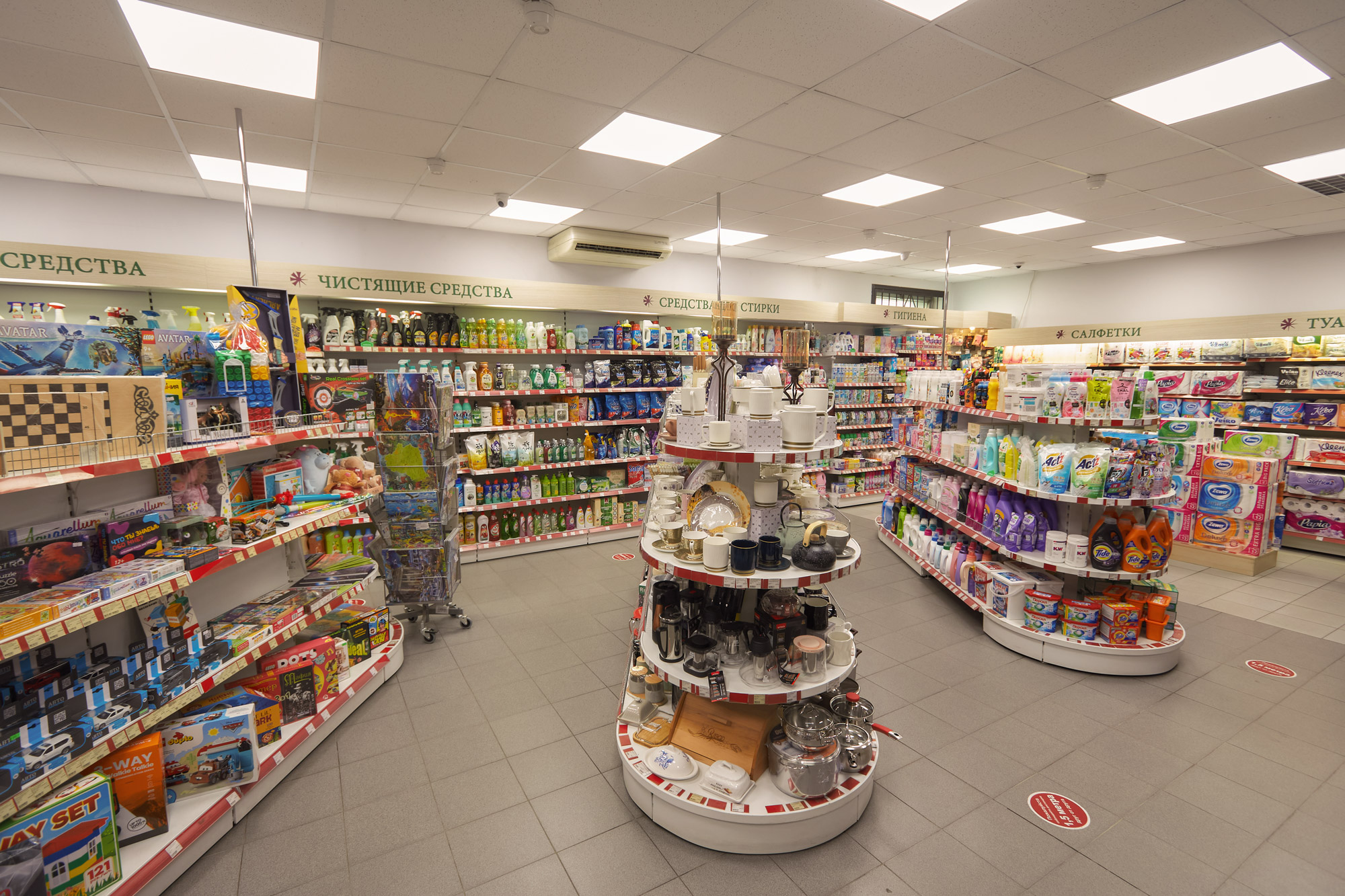 заменить светильники в отделе косметики и ухода за телом. У заказчика была потребность в светильниках для потолков Армстронг с равномерной засветкой рассеивателя и индексом цветопередачи не менее CRI90.