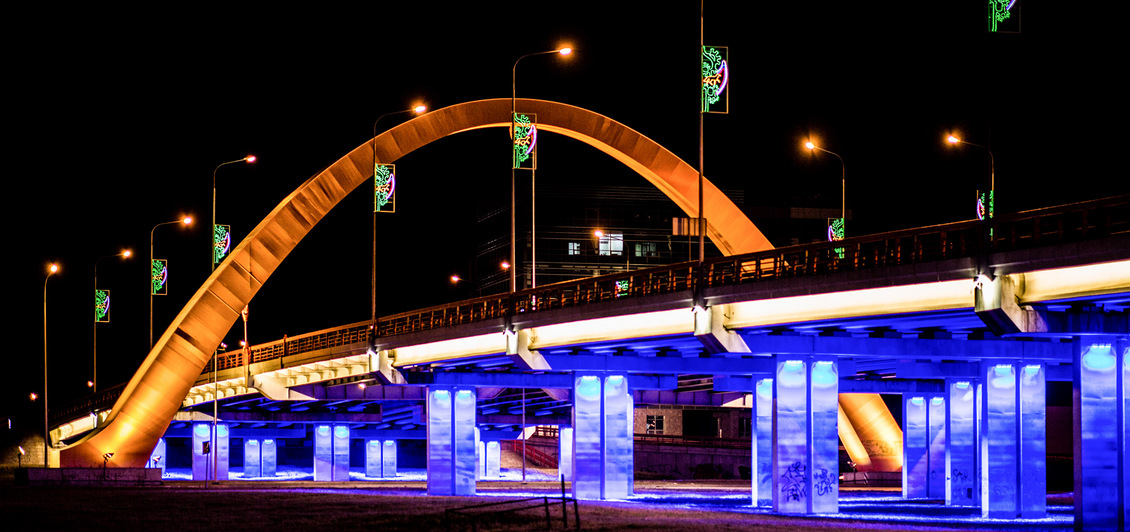 В 2021 году к нашим партнерам — компании ООО «Среда комфорта» — обратилась администрация города Сургут с задачей по архитектурно-художественной подсветке транспортной развязки на улице Аэрофлотская.