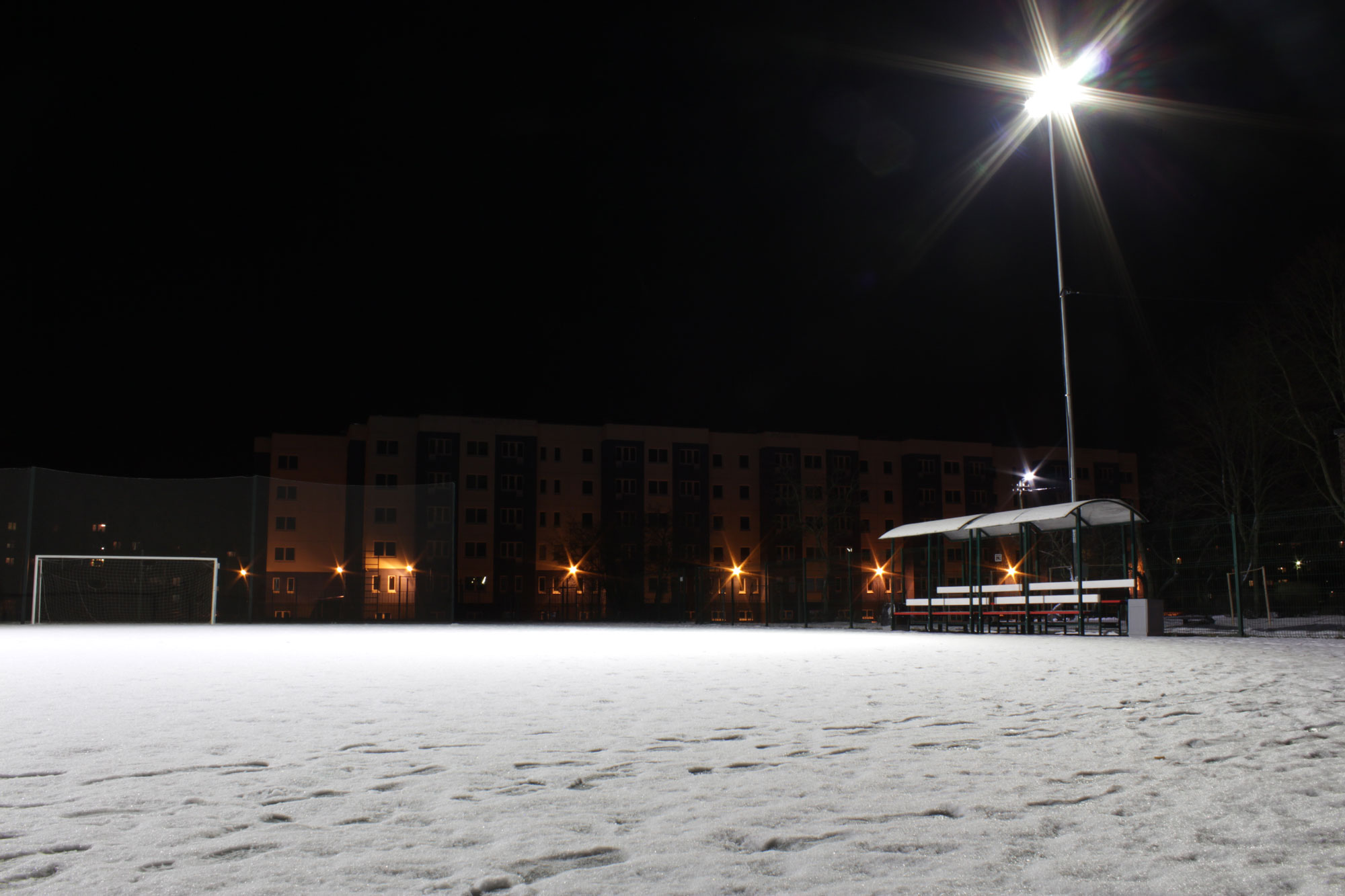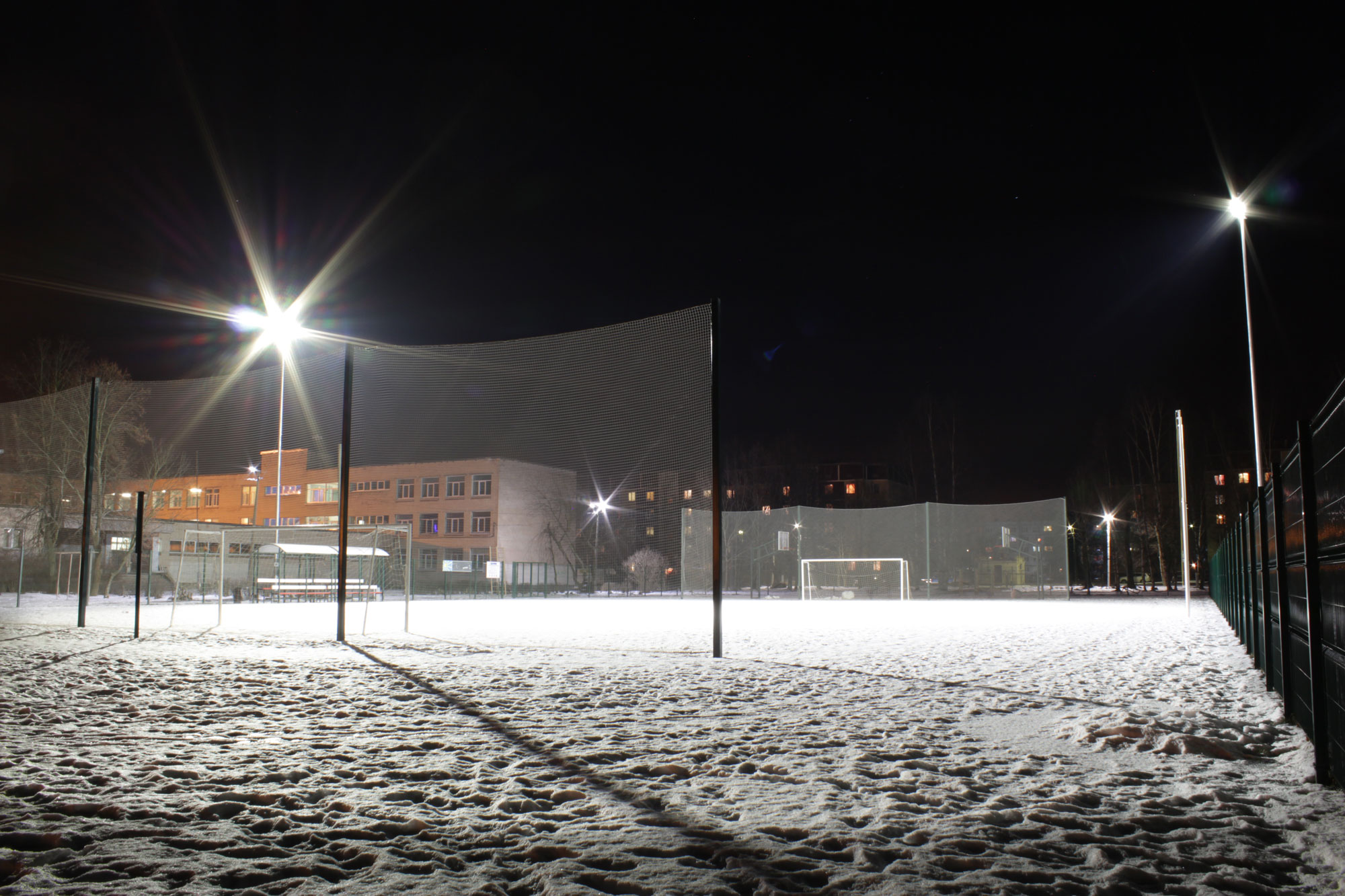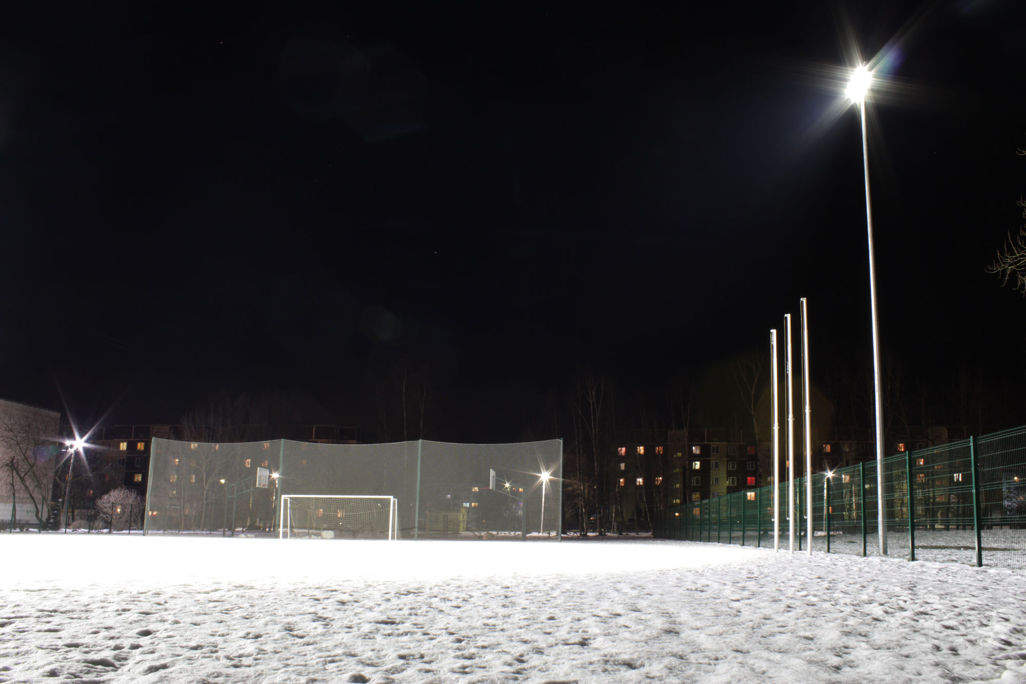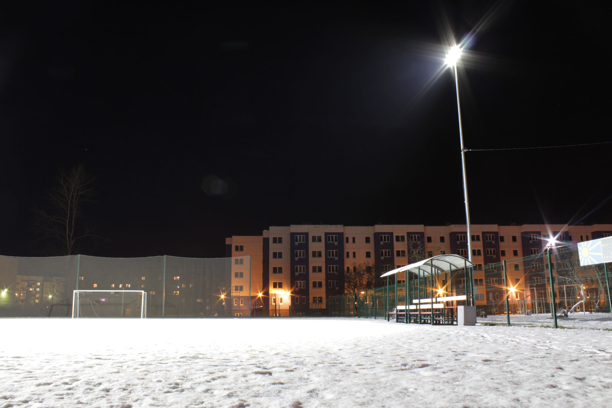 Компания «Газпром» производила реконструкцию 30 стадионов и детских площадок по всему северо-западу России в рамках программы «Газпром детям». По проекту светильник устанавливали на 2 опоры с высотой подвеса 9 метров, поэтому нашими специалистами был предложен светильник ПромЛед Магистраль v2.0-250 с линзой 60°. После предварительного расчета в программе "DIALUX", который показал, что уровень и равномерность освещения полностью соответствует требованиям заказчика и всем ГОСТам, – решение было окончательным.