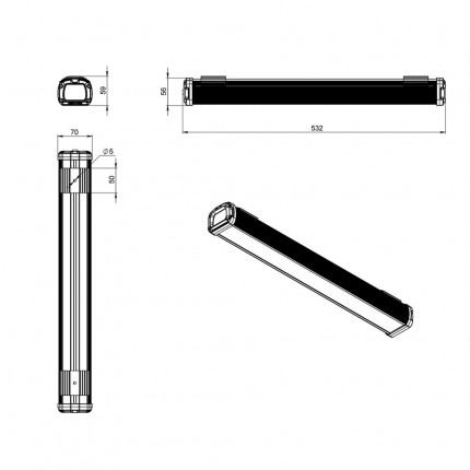 Экструдированный корпус изготовлен из анодированного алюминия и устойчив к коррозии. Т.к. светильники представлены в небольших мощностях, для них не требуются теплоотводящие ребра с большой площадью поверхности, поэтому корпус имеет малые габариты и вес.