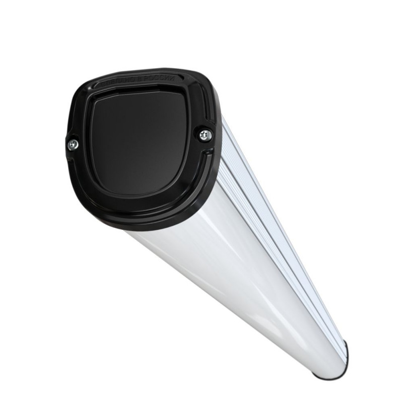 Полукруглый опаловый рассеиватель из УФ-стабилизированного поликарбоната создает мягкое освещение с широким углом излучения. Комбинация особой формы корпуса, расположения светодиодных планок и рассеивателя исключает потери светового потока внутри светильника, за счет чего достигается уникальное значение световой отдачи.