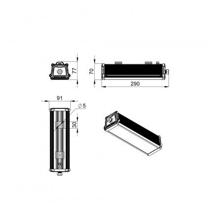 Экструдированный корпус изготовлен из анодированного алюминия, устойчивого к коррозии, имеет торцевые металлические крышки с силиконовым уплотнителем. Большое количество ребер обеспечивает эффективный теплоотвод.