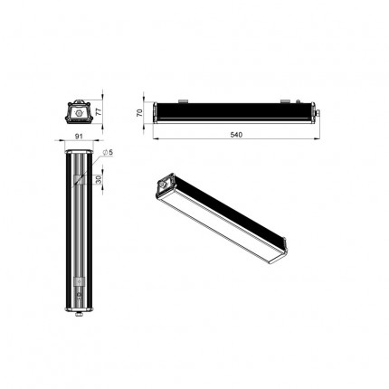 Экструдированный корпус изготовлен из анодированного алюминия, устойчивого к коррозии, имеет торцевые металлические крышки с силиконовым уплотнителем. Большое количество ребер обеспечивает эффективный теплоотвод. Светильник надежно защищён от влаги и пыли (IP66), имеет широкий диапазон температуры эксплуатации от -40 °С до +50 °С.