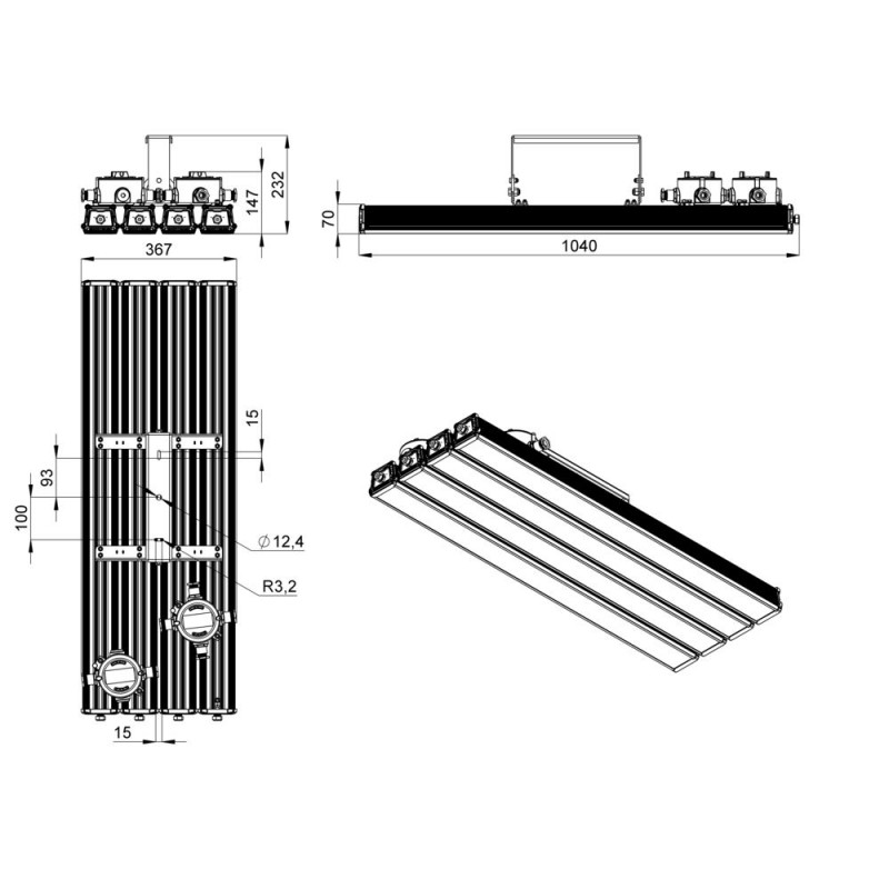 Экструдированный корпус изготовлен из анодированного алюминия, устойчивого к коррозии, имеет торцевые металлические крышки с силиконовым уплотнителем. Большое количество ребер обеспечивает эффективный теплоотвод. Светильник надежно защищён от влаги и пыли (IP66), имеет широкий диапазон температуры эксплуатации от -40 °С до +50 °С.