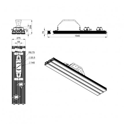Экструдированный корпус изготовлен из анодированного алюминия, устойчивого к коррозии, имеет торцевые металлические крышки с силиконовым уплотнителем. Большое количество ребер обеспечивает эффективный теплоотвод. Светильник надежно защищён от влаги и пыли (IP66), имеет широкий диапазон температуры эксплуатации от -40 °С до +50 °С.