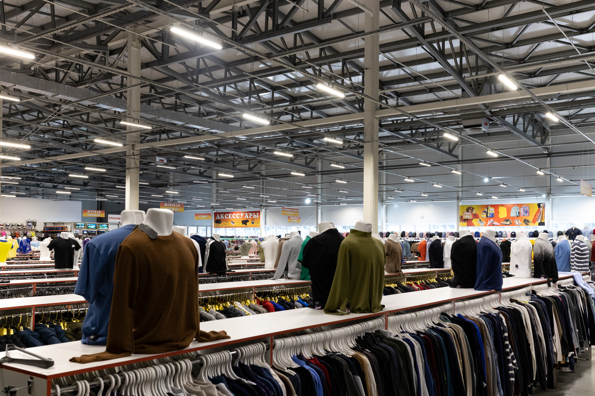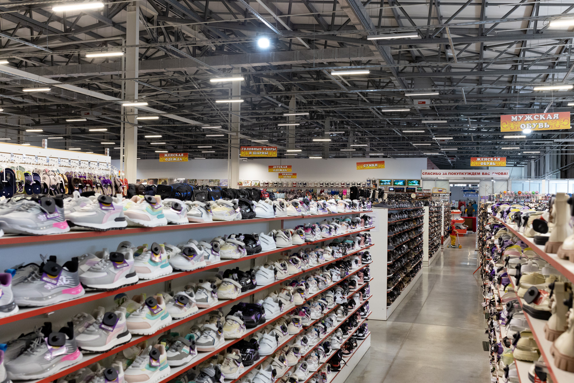 в рамках реализации проекта были подобраны светодиодные светильники из каталога PromLED. Для замены освещения торгового зала в итоге были использованы линейные светильники из серии «Т-Линия v2.0», на которые опционально были установлены поворотные кронштейны.