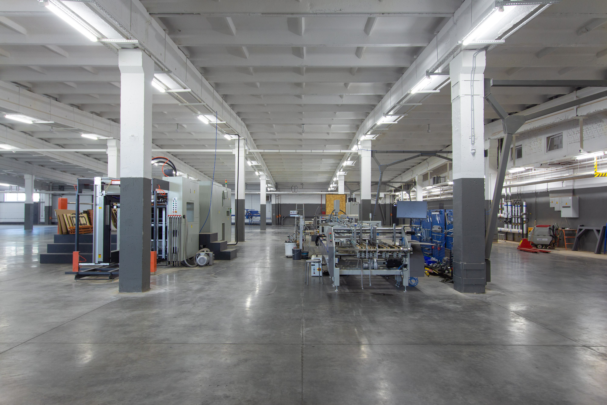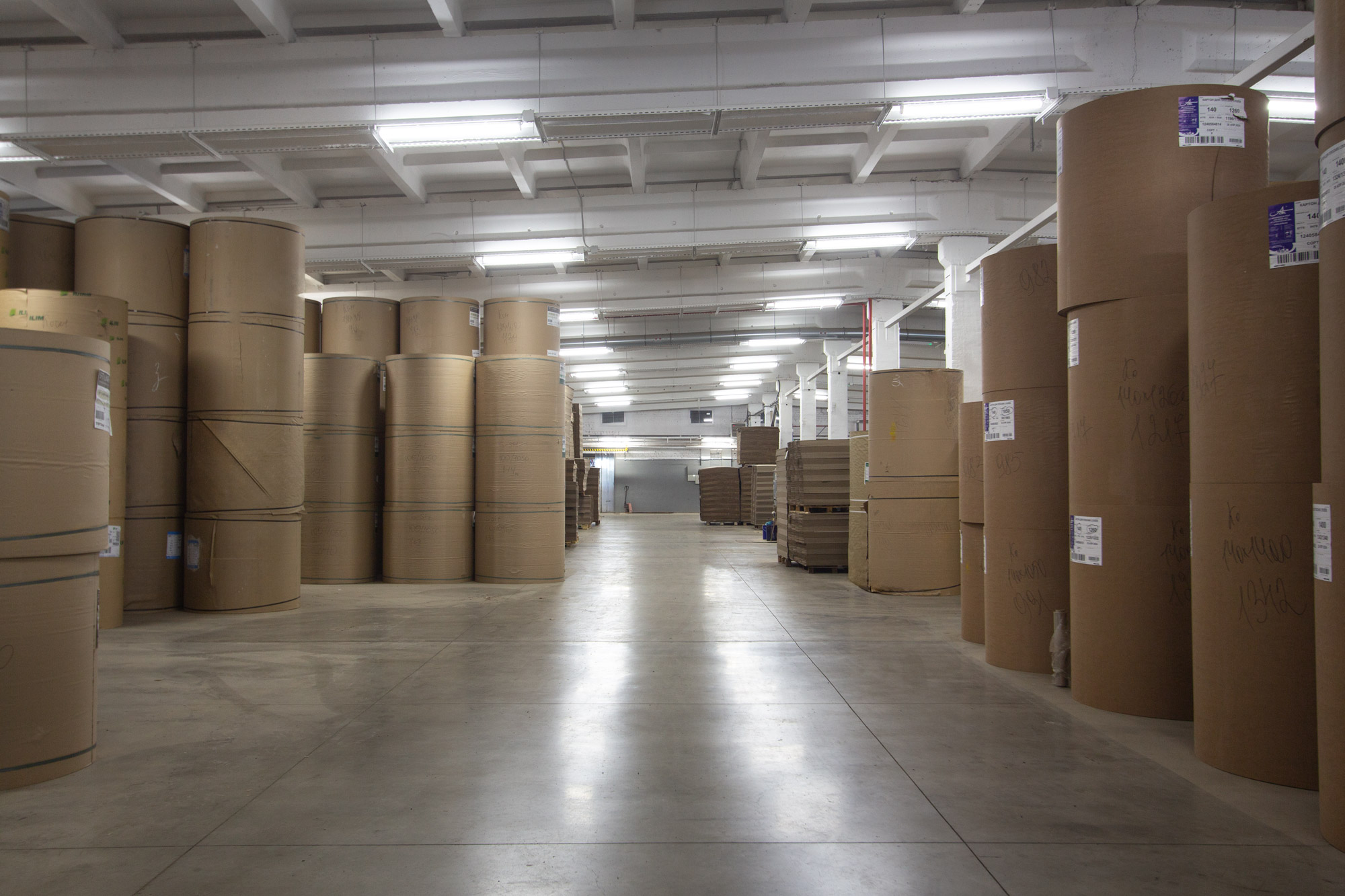 освещение цехов по производству картона и склада по его хранению.