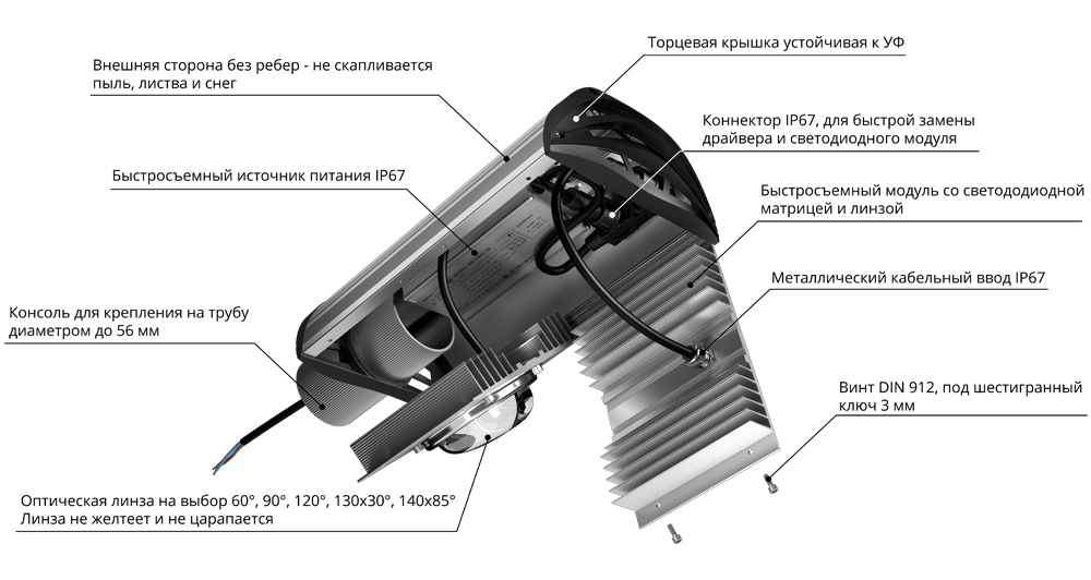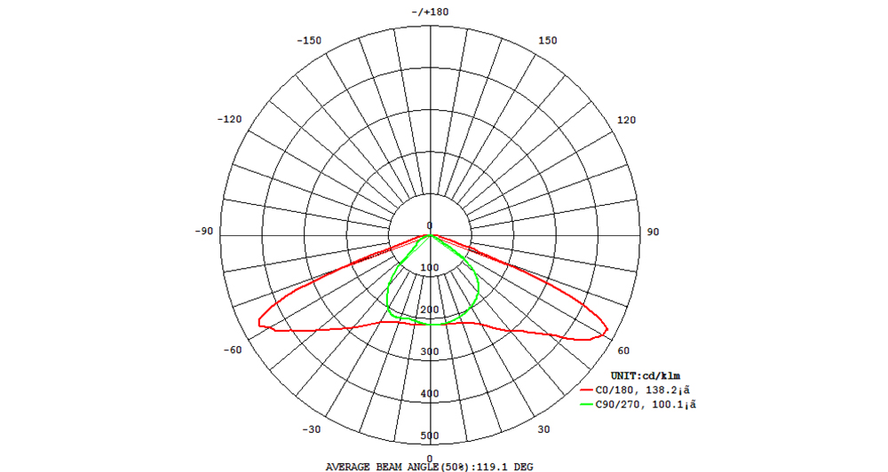 Форма КСС показывает, что вторичная оптика 140х85° идеально подходит для освещения автомобильных магистралей, улиц, дворов, наружного освещения производственных площадей предприятий. Светильники с данной оптикой можно устанавливать на большом расстоянии друг от друга, чтобы добиться равномерной засветки и уменьшить количество осветительных приборов.