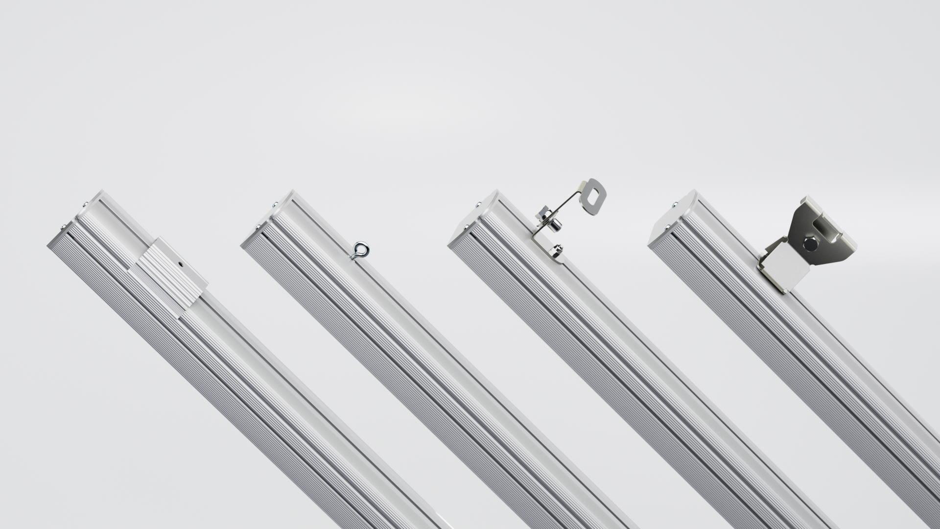 Возможны различные варианты монтажа: базовое крепление J-Hook (защелка), опциональные — крепление на кронштейн, на натяжной трос, на винт-петли.