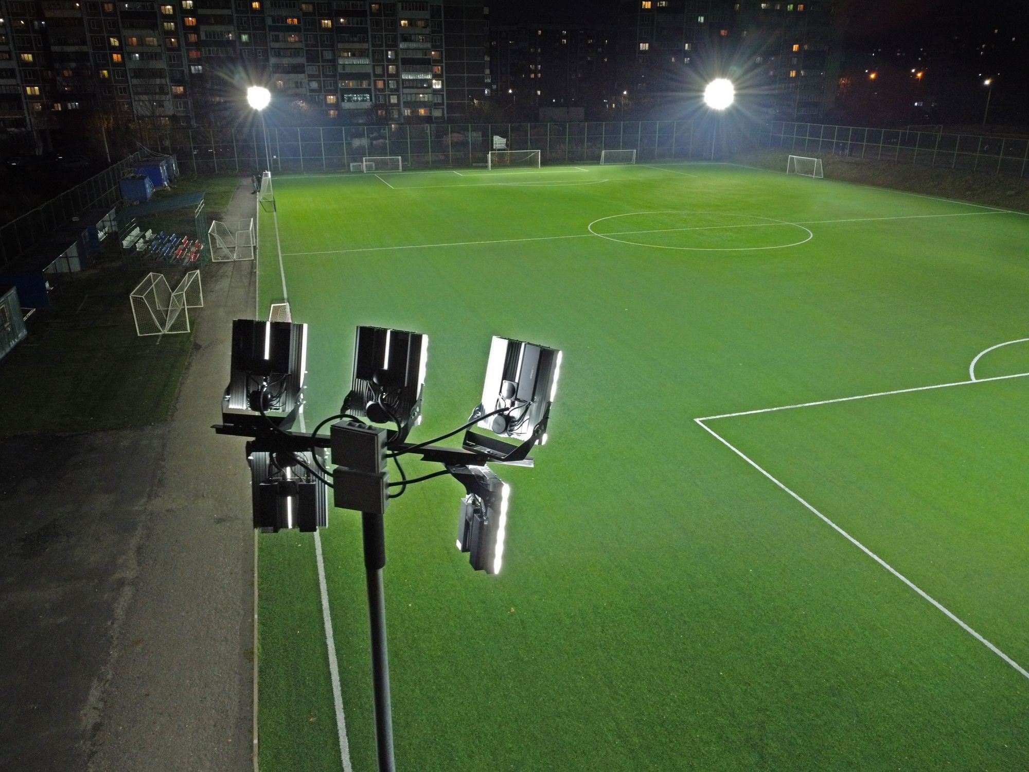 Предложенное осветительное решение: Вместе с монтажной компанией ИП Замякин Петр Николаевич, разработали техническое задание и сделали светотехнический расчет для освещения стадиона. В качестве аналога были предложены светильники Плазма 500 S 5000К 12° в количестве 20 штук.