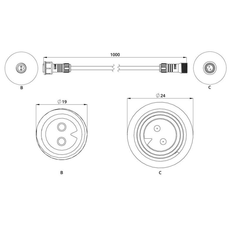 Аксессуар. Удлинитель с разъемами питания. М19, 12-48В, 1м