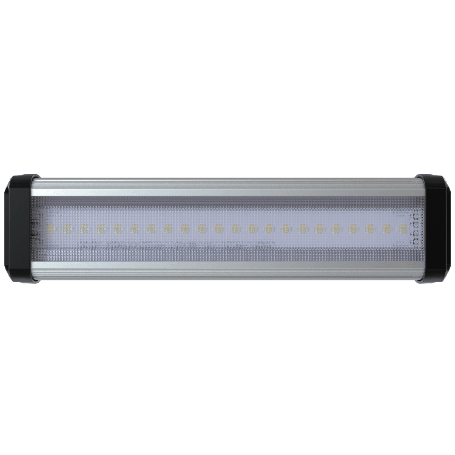 Корпус изготовлен из анодированного алюминия, литые боковые заглушки – из ABS-пластика. Светильник полностью герметичен (IP67).